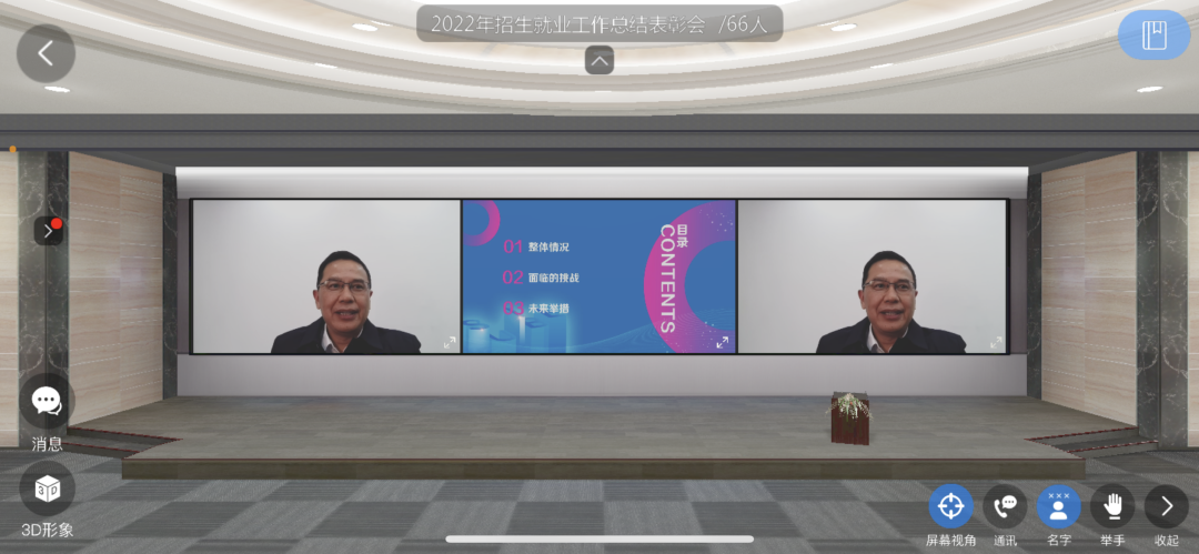 12月16日下午,学校召开2022年招生就业工作总结表彰会暨2023年招生就业工作动员部署会。会议以“元宇宙”线上形式举行。校长汪荣明,校党委副书记、副校长祁明,副校长徐永林,市西中学教育管理处主任郑岚,德勤华永会计师事务所人力资源部总监边皓以及学校相关职能部门负责人、各学院领导、毕业班辅导员出席本次会议。会议由招生就业处处长魏舒主持。