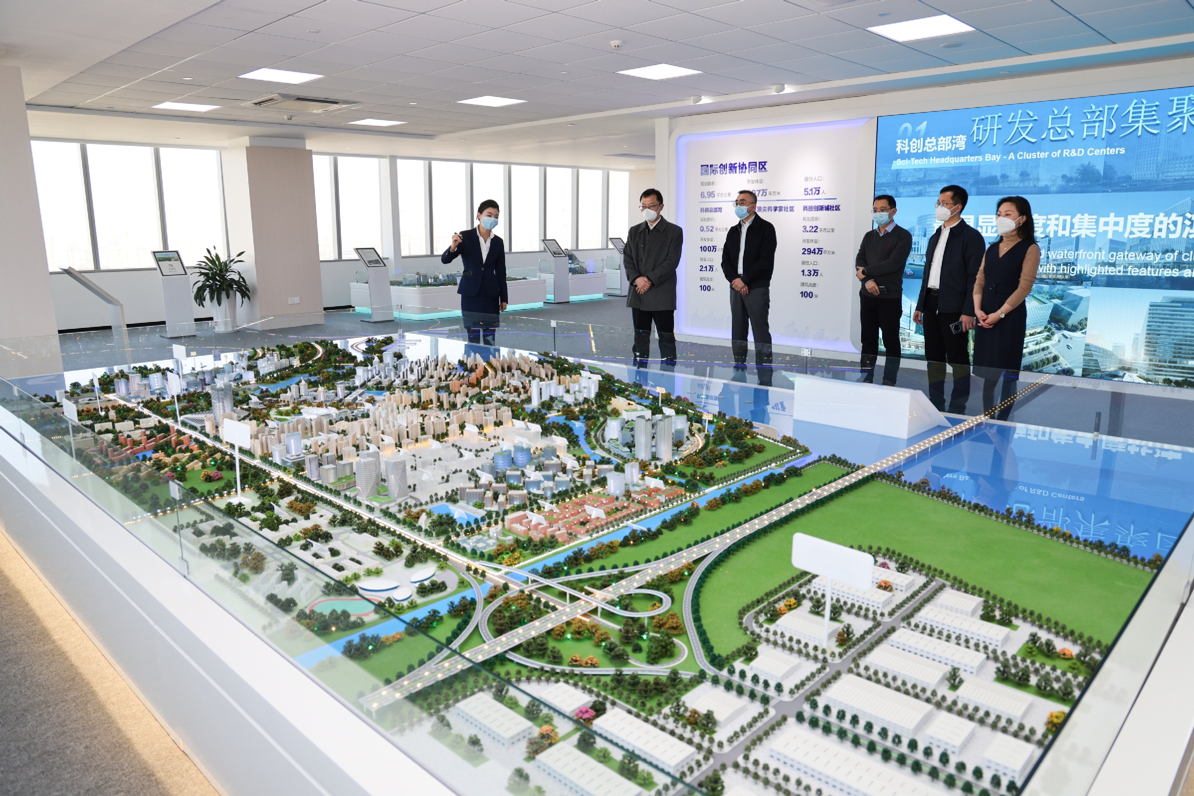 座谈交流后,汪荣明一行赴临港新片区标志性建筑创晶科技中心调研交流,并在国际创新协同区展厅观看了专题展。