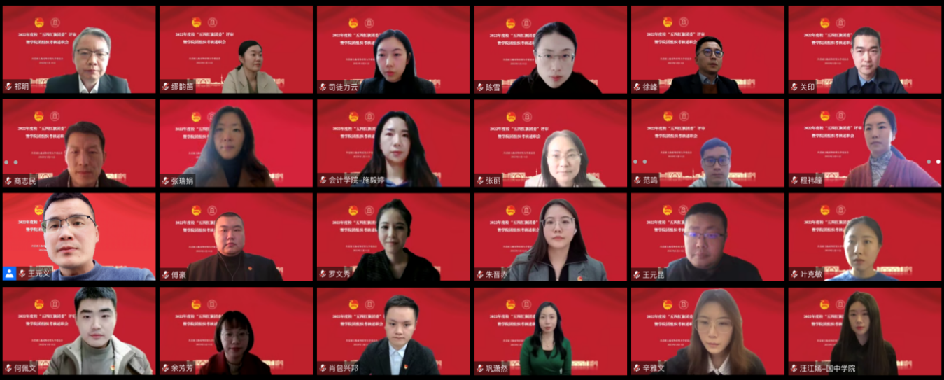 1月11日,2022年度校“五四红旗团委”评审暨学院团组织考核述职会线上举行。校党委副书记、副校长祁明,学(研)工部部长缪韵笛、学院党委(党总支)副书记、校团委老师、学院团组织负责人、学生代表等参加会议。会议由团委书记司徒力云主持。