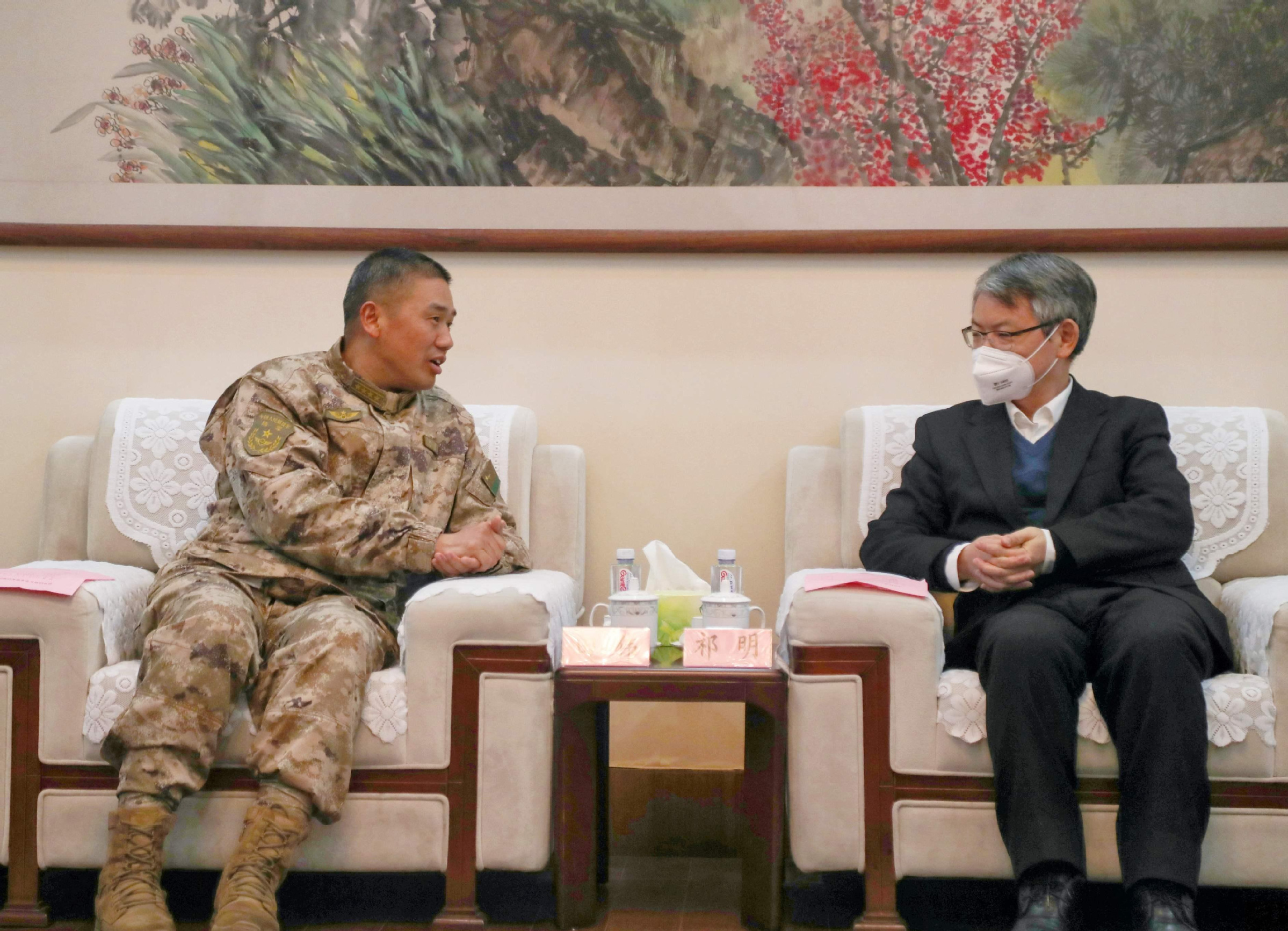 祁明首先代表学校全体师生向部队全体官兵致以新春节日的诚挚问候。他回顾了近几年双方共建情况,对部队在新生军训、国防教育、爱国主义教育等方面给予的支持和帮助表示衷心感谢。他指出,今后将进一步依托学校丰富的科教、人才资源优势,深化军地合作交流,促进协同发展,在党支部共建方面加强联动,为助力新征程强军事业和学校自身建设发展取得新突破、作出新贡献。