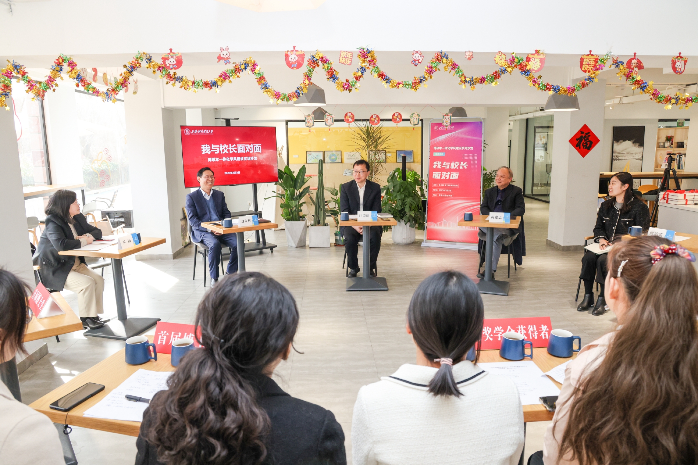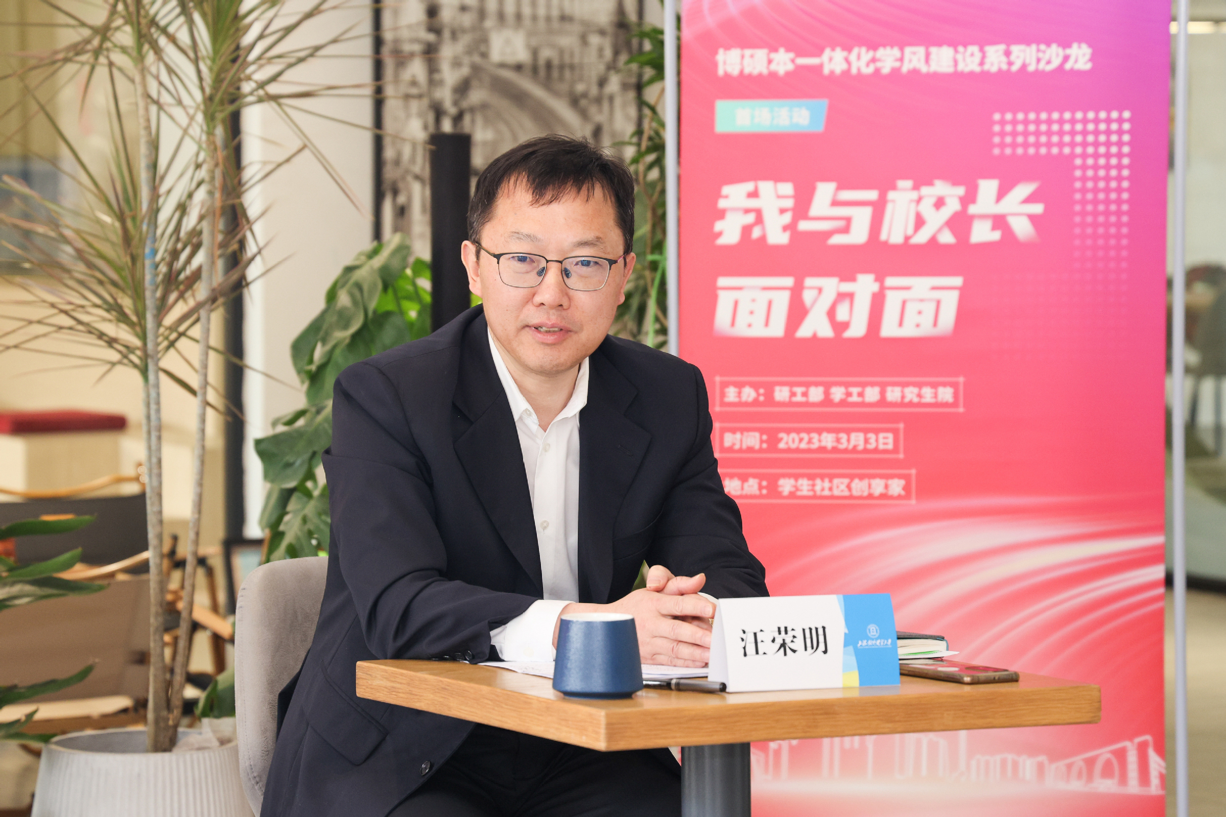 3月3日下午,学校在“一站式学生社区”创享家举办了博硕本一体化学风建设系列沙龙的首场活动“我与校长面对面”。校长汪荣明、WTO亚太培训中心主任黄建忠、研究生院院长刘永辉出席活动,首届校长奖学金获得者和首届博士生参加了沙龙,活动由党委学(研)工部部长缪韵笛主持。