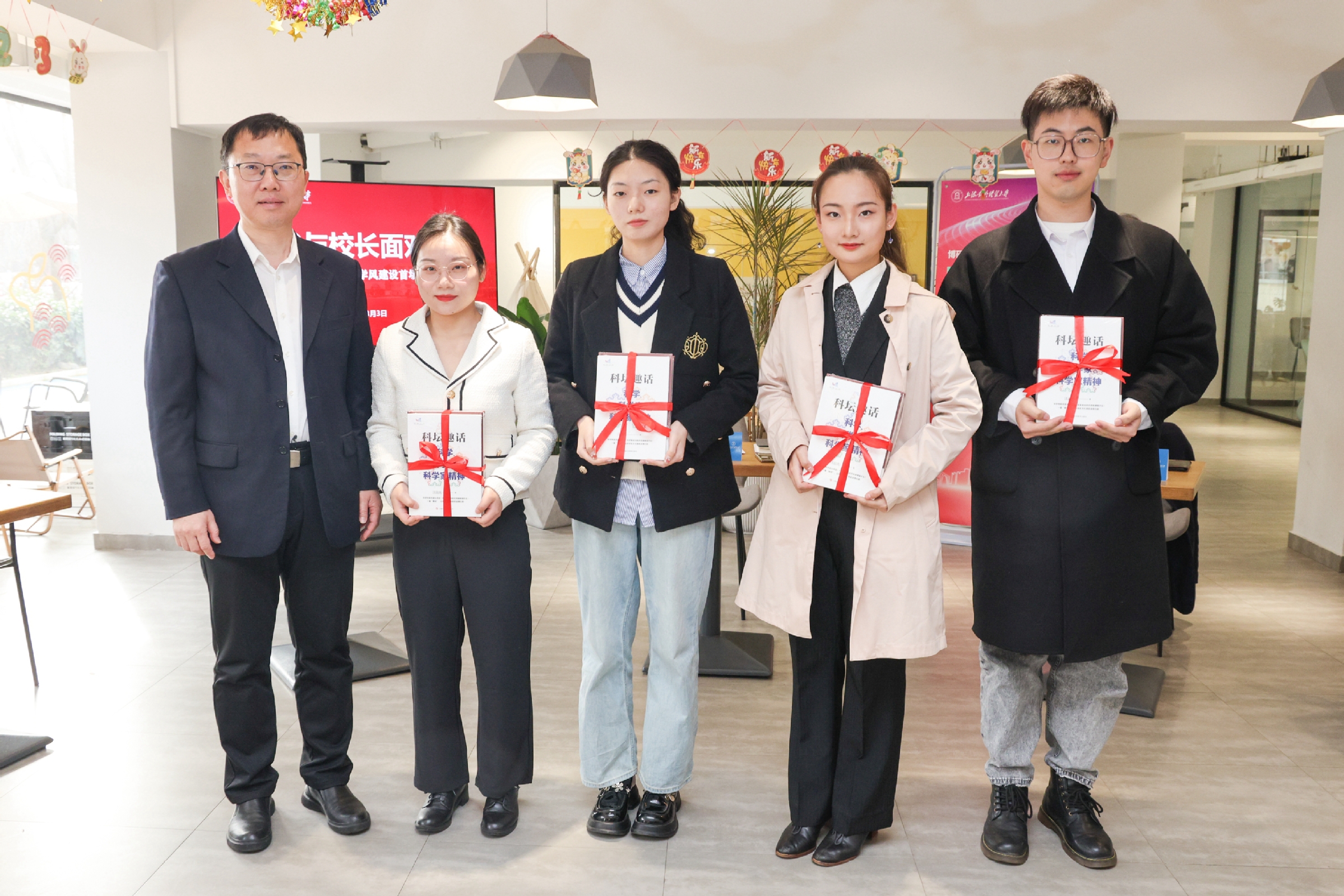 活动中,汪荣明校长向学生赠送了《科坛趣话》《经济逻辑》两本书籍。