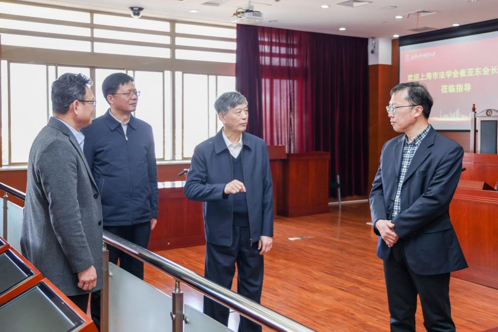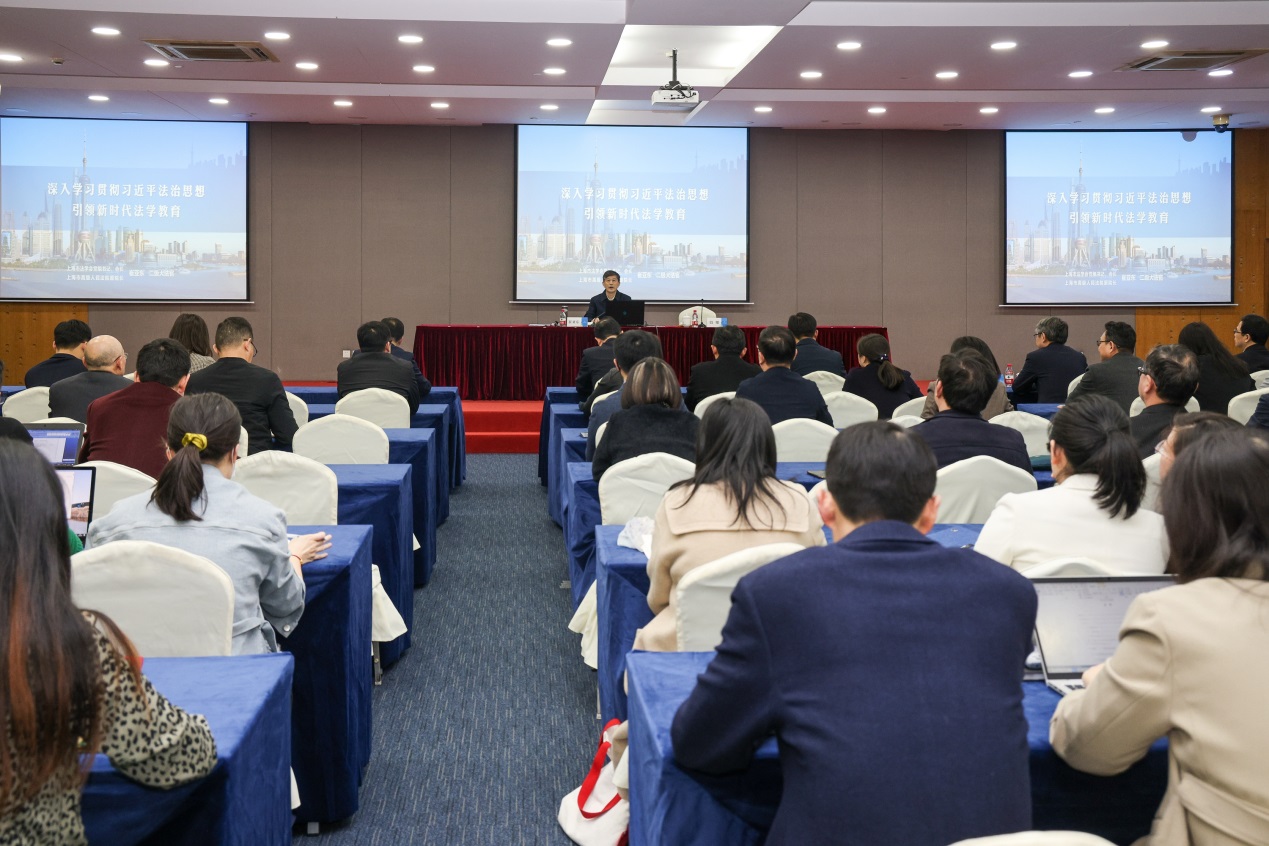 会前,崔亚东会长一行与校党委书记殷耀、校长汪荣明就法学学科建设、涉外法治人才培养等作了沟通交流,参观了学校近年发展成果展和模拟法庭。学校党委理论学习中心组成员、全体中层干部、教工党支部书记、系(专业)主任、各民主党派、统战团体负责人,第7期青年骨干教师研修班成员参加报告会。