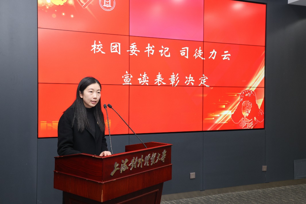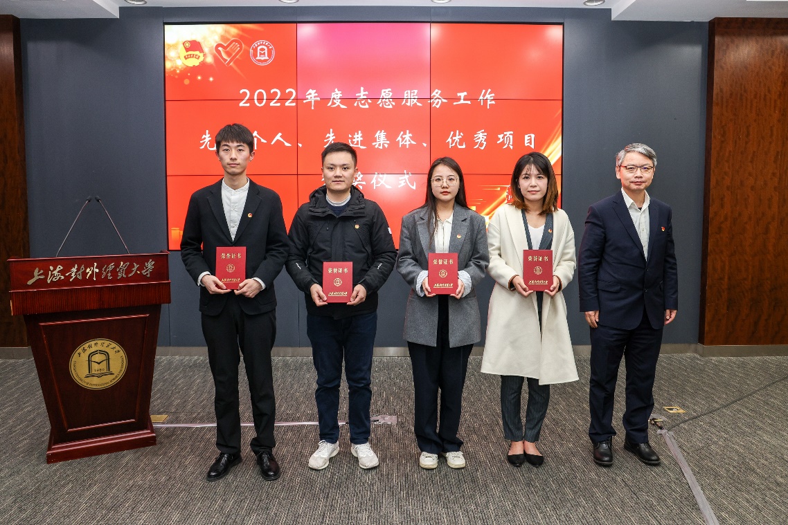 司徒力云宣读了《关于表彰2022年度必赢626net入口首页志愿服务工作先进集体、优秀项目、先进个人的决定》。经评选,国际商务外语学院团委等4个集体获评“志愿服务工作先进集体”,疫情防控志愿服务等5个项目获评“志愿服务工作优秀项目”,封冰悦等10名学生获评“杰出志愿者”称号,黄骏韬等35名学生获评“优秀志愿者”称号。