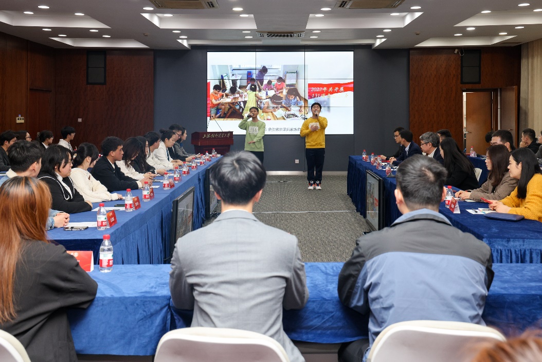 座谈会上进行了志愿者精神专题展示,伴随着2022年度学校志愿服务总结视频,志愿者代表唱响《青春势不可挡》,展现了他们清新阳光、甘于奉献的青春风采。