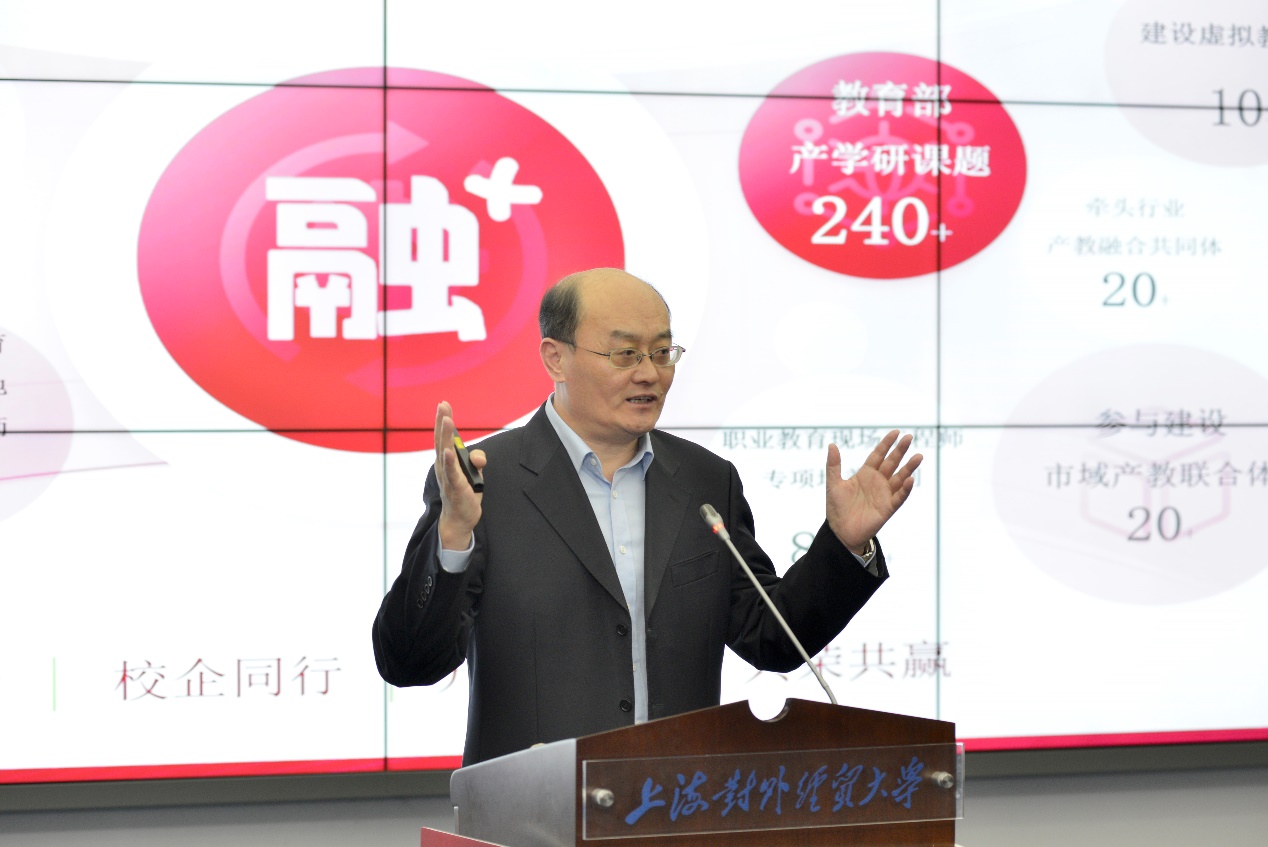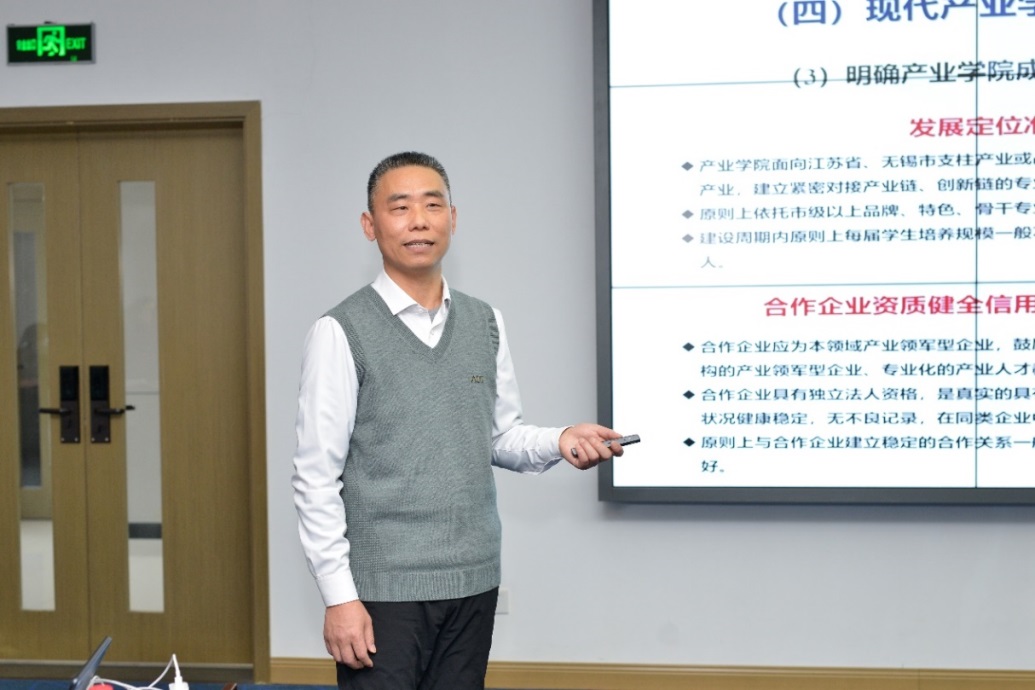 无锡商业职业技术学院副校长朱璋龙,进行了“深化产教融合 助力高质量人才培养”的主题报告。他以“一项计划、一项工程、五项改革”的办学特色出发,分享了学校在校企合作、平台搭建、行政配套与教学改革中的成果。