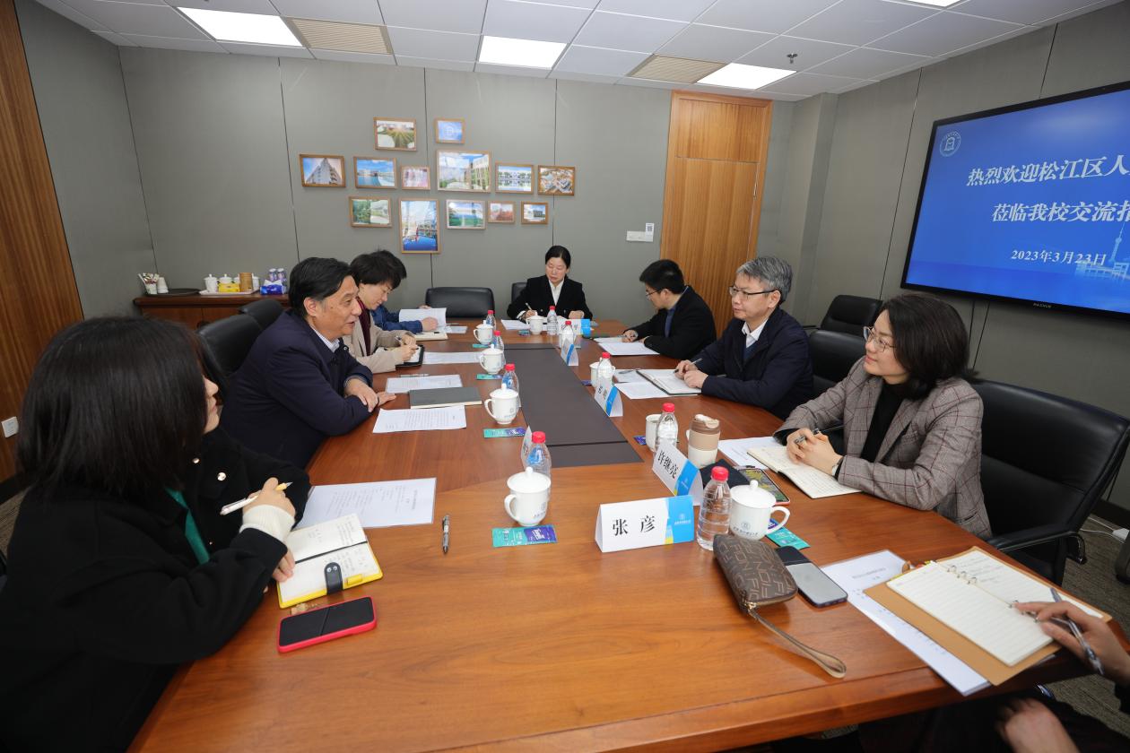许复新对学校在服务松江区域经济社会发展方面做出的贡献表示感谢。他提出希望聚焦教育科技人才等重点领域,以落实长三角G60科创走廊国家重大战略任务为牵引,加强区校联动。围绕创新成果转化开展务实合作,创新校地协同育人、供需联动培训等机制,为高层次人才营造良好的科研创新氛围。