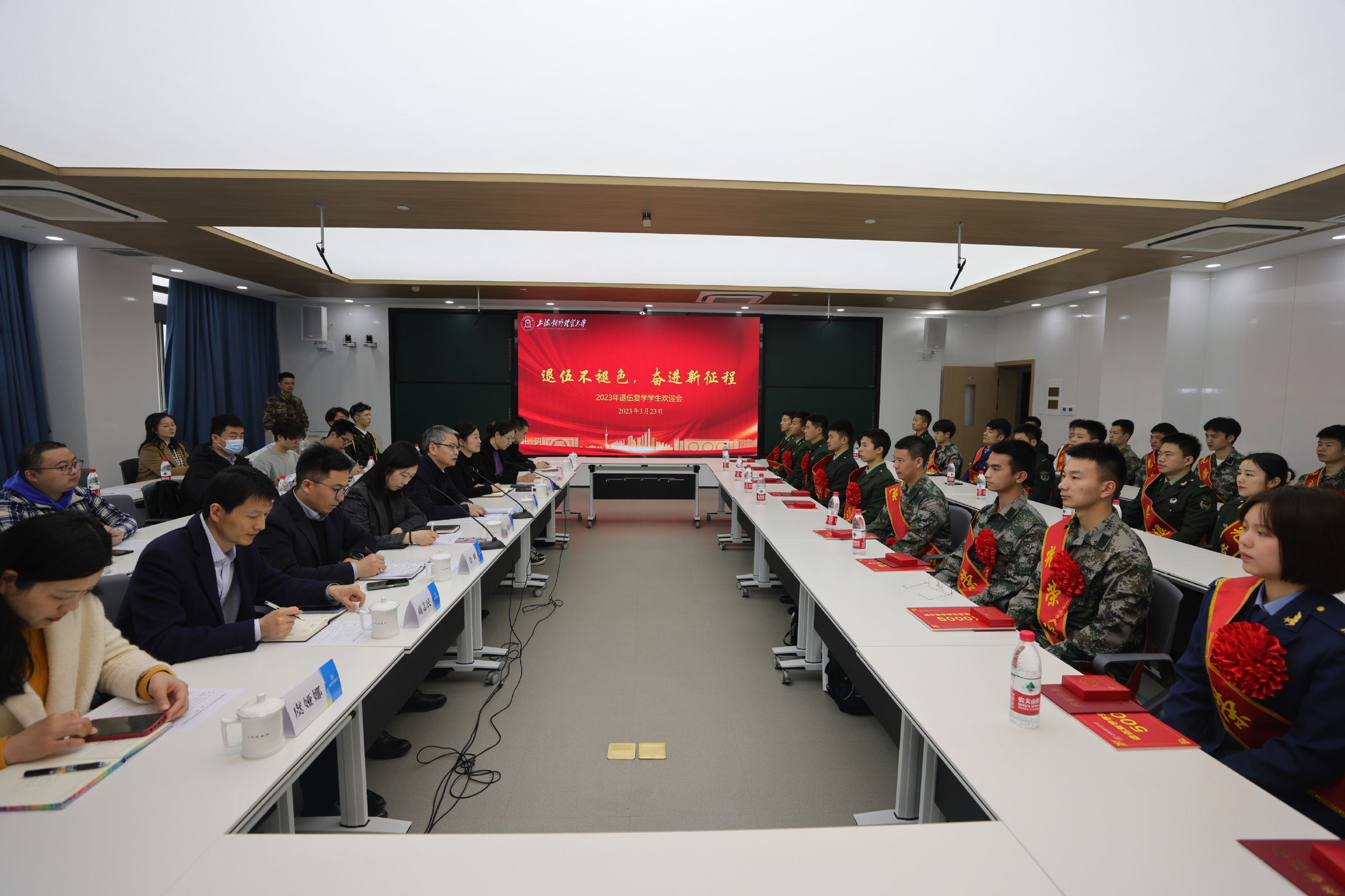 3月23日中午,2023年退伍复学学生欢迎会在图文信息大楼534会议室举行。党委副书记、副校长祁明,武装部部长缪韵笛,武装部副部长司徒力云,相关学院党委副书记、辅导员、学生处教师代表、团委教师代表、退伍复学学生代表及秋季征兵意向学生代表参加会议。会议由武装部干事张华清主持。