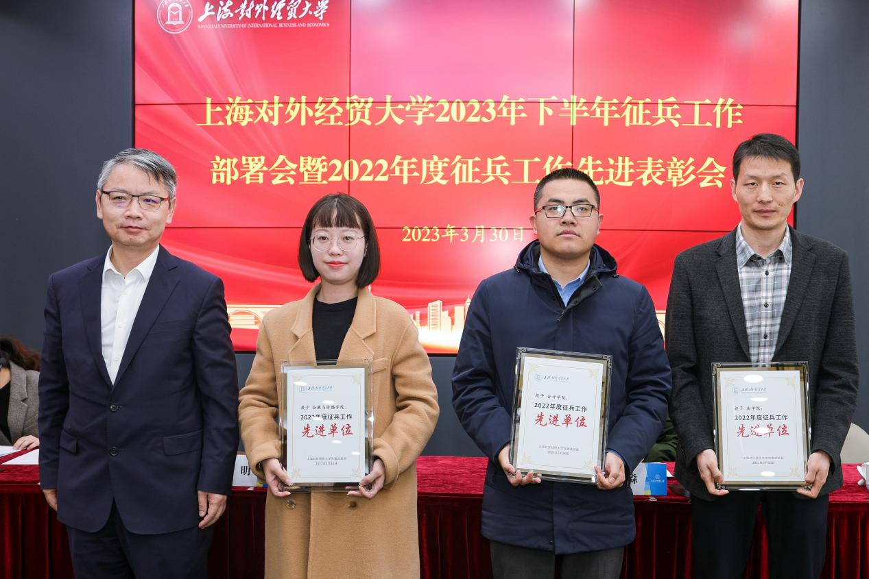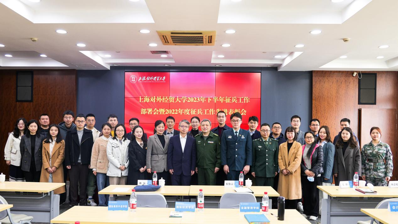 3月30日上午,必赢626net入口首页2023年下半年征兵工作部署会暨2022年度征兵工作先进表彰会在松江校区图文信息大楼503会议室举行。校党委副书记、副校长祁明,长宁区人武部副部长周淼,武装部部长缪韵笛,长宁区人武部军事科工作人员,各学院党委(党总支、直属党支部)副书记,招生就业处老师代表,毕业班辅导员参会。会议由武装部副部长司徒力云主持。