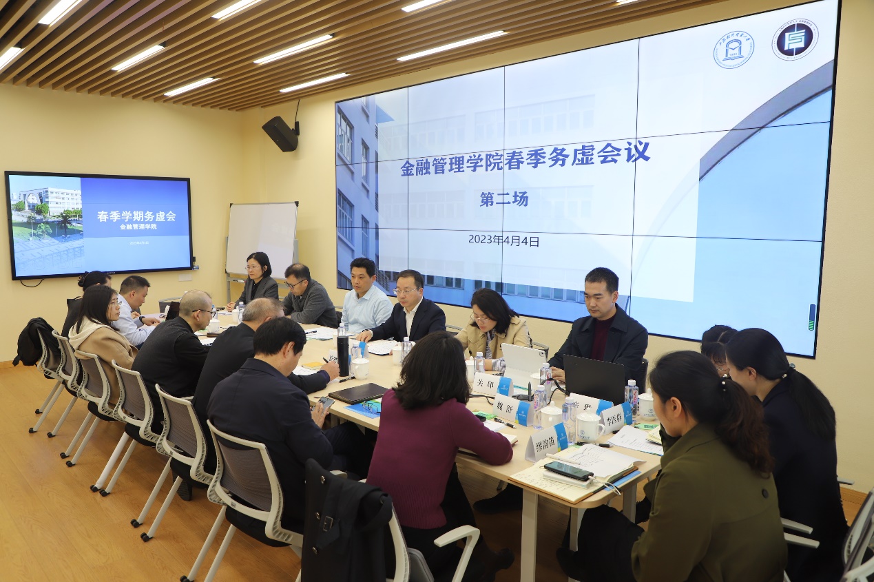 会上,学院院长张铁铸从学院架构、师资队伍、学生情况、一流专业建设、学位点布局、科研服务社会和数字金融实验班培养等七个方面通报学院总体情况和未来发展规划。各行政部门领导就学科结构优化、一流课程建设、课程思政融合、培养方向调整、差异化特色打造、师资队伍引育、国际合作加强和校内协同发展等角度,结合学校发展态势和高等教育发展要求,为学院特色凝练和发展定位提出了宝贵意见。