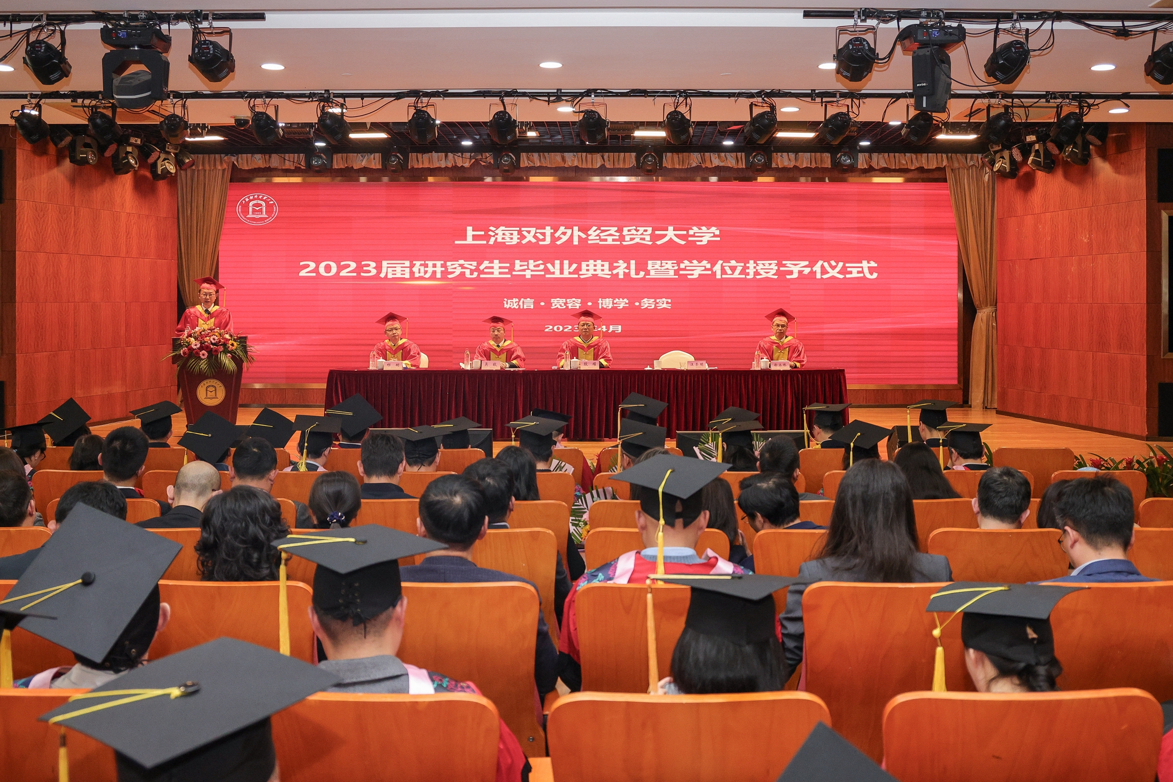 4月6日上午,必赢626net入口首页2023届研究生毕业典礼暨学位授予仪式在松江校区图文信息大楼507报告厅举行。校党委书记殷耀,校长汪荣明,校党委副书记、副校长祁明,校党委副书记吴毅,副校长徐永林出席毕业典礼。各学院、各职能部门领导和老师,2023届研究生代表和校友代表参加了毕业典礼,全体毕业生和家长在线上一同观看。毕业典礼由祁明主持。