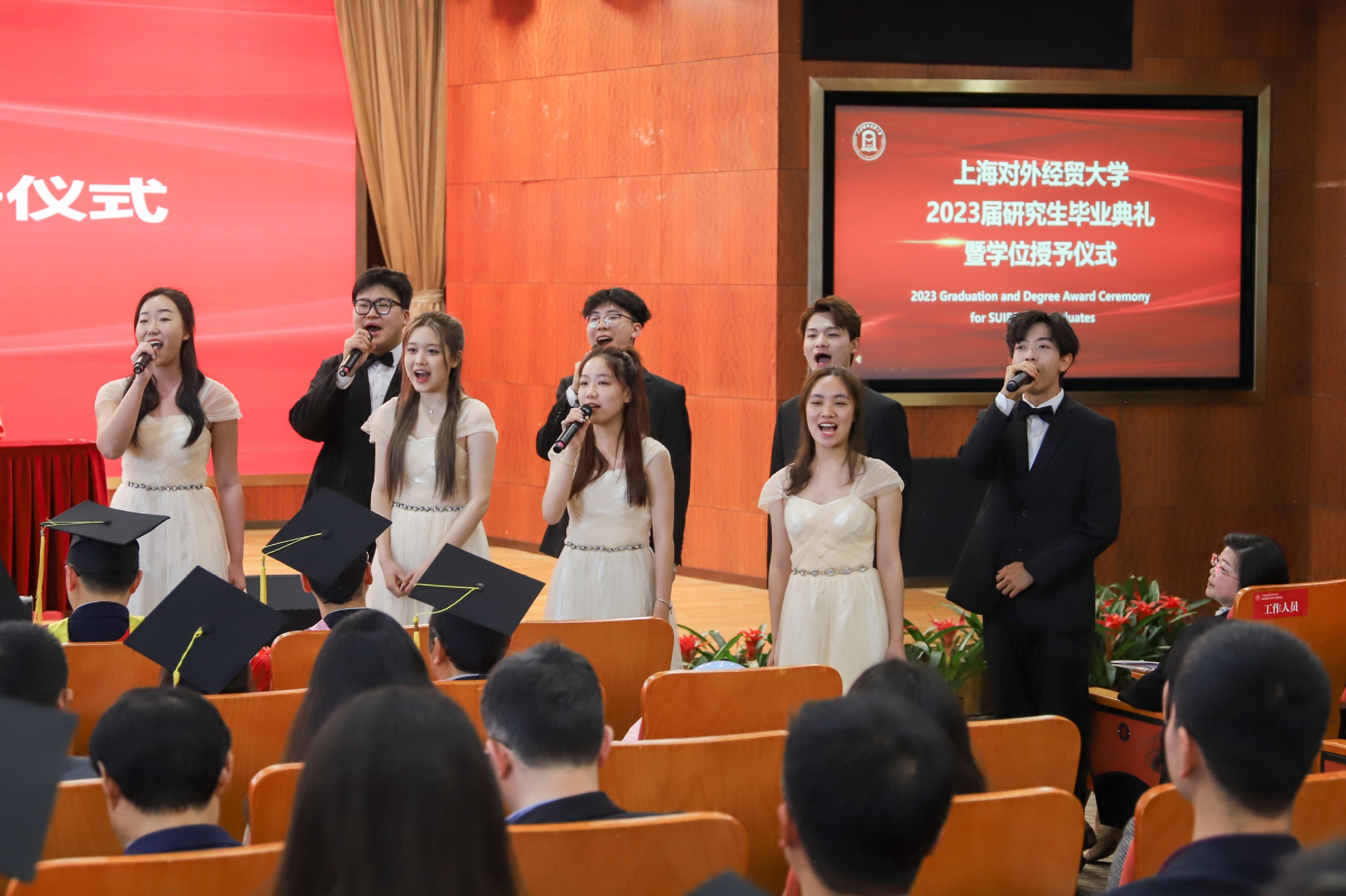 典礼上,各学院毕业生代表以《我对上经贸大说》的原创朗诵,向母校深情告白。学生代表向“三全育人”导师和教职工代表感恩献礼,向他们致以诚挚的敬意和最衷心的感谢。
