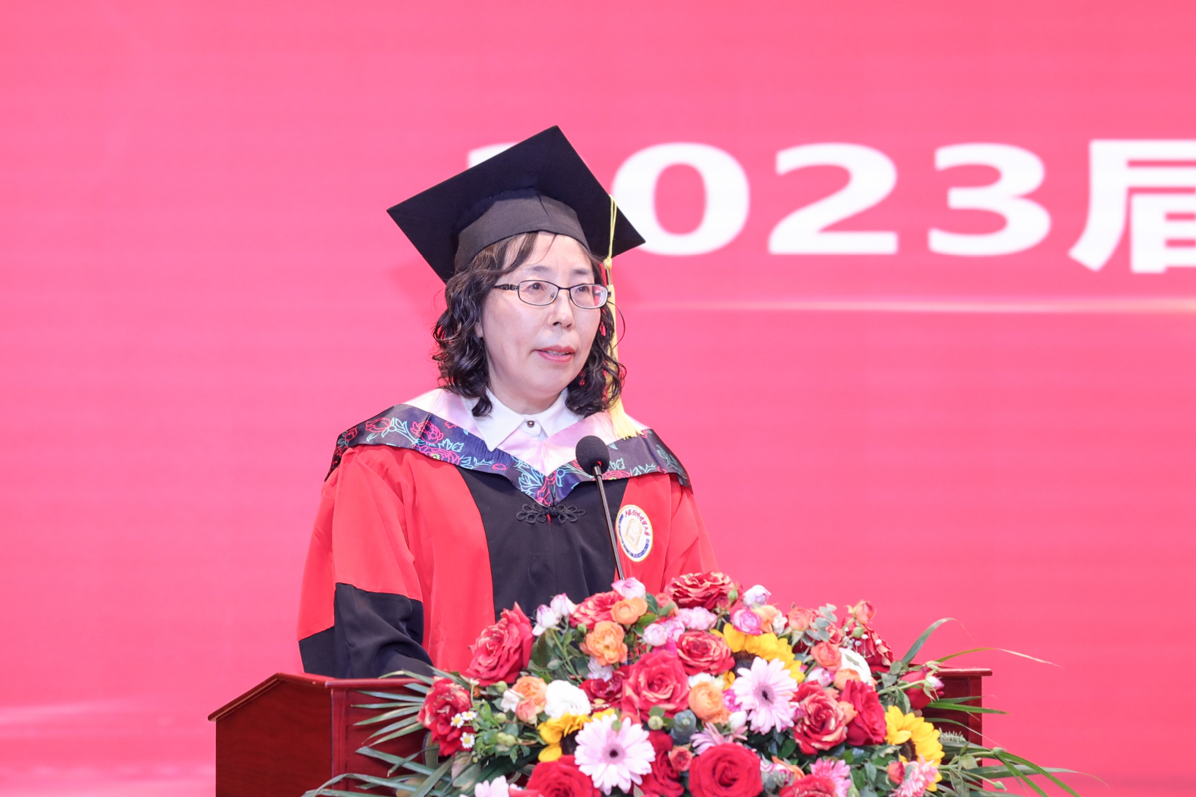 马克思主义学院院长秦淑娟教授作为硕士生导师代表勉励毕业生要胸怀“国之大者”,厚植家国情怀;常怀“奉献之心”,贡献绵薄力量;心怀“奋斗之志”,涵养进取品格。