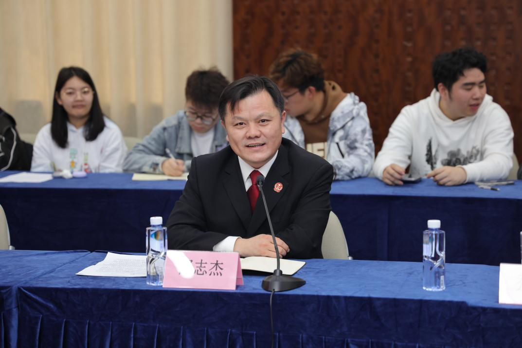 法学院院长乔宝杰向与会人员介绍了“实习法官助理训练营”项目的实施背景、选拔方式和项目特点,并从双师制管理、精准化考核、有组织的实习和项目全周期管理等4个方面作了说明。
