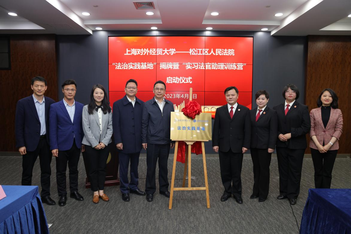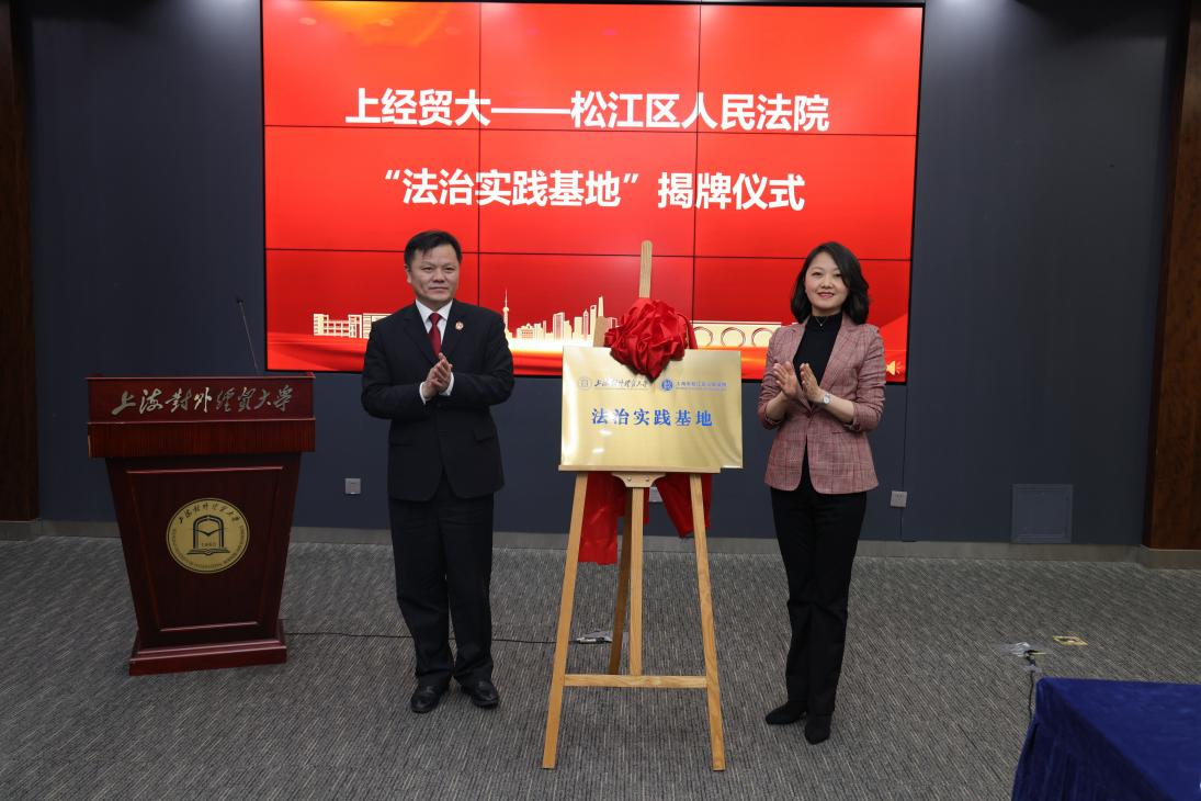 会上,校招生就业处处长魏舒和松江区人民法院政治部副主任邵志杰共同为上经贸大——松江区人民法院“法治实践基地”揭牌。