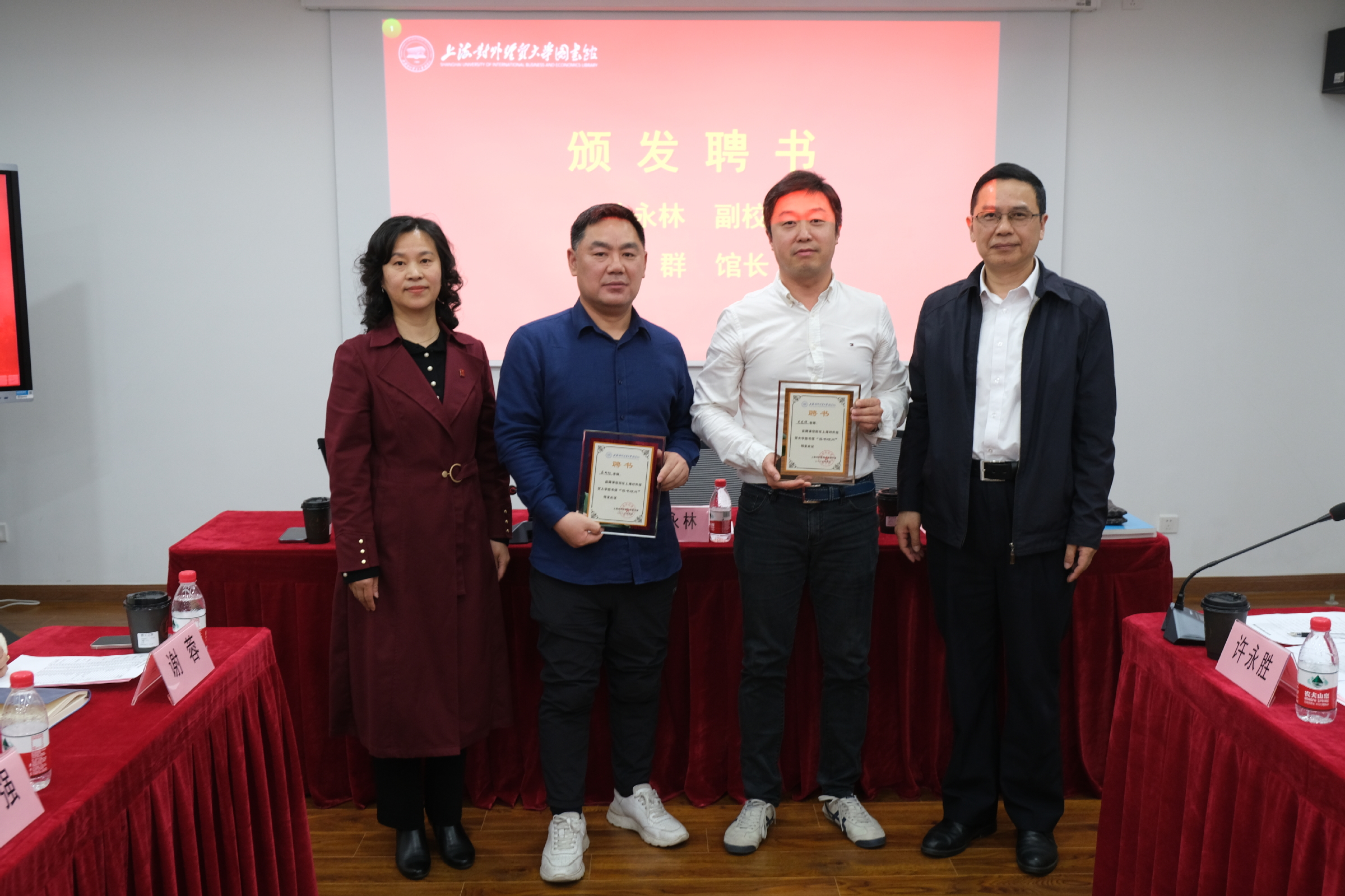 在“荐书顾问”聘任环节,图书馆直属党支部书记夏俊宣读了荐书顾问名单。徐永林副校长和王群馆长为参会的荐书顾问颁发了聘书。