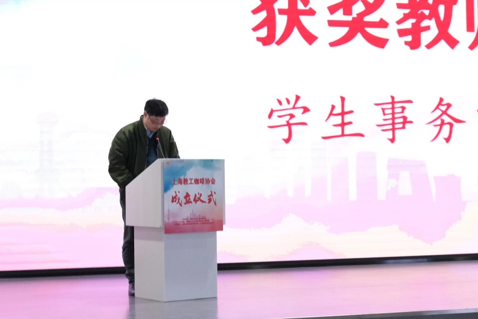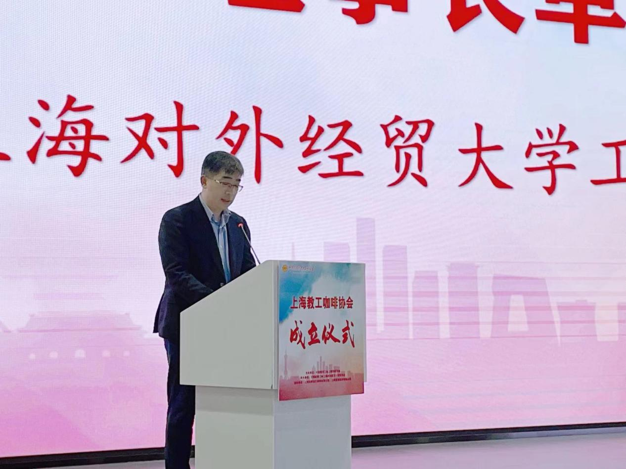 上海市教育工会副主席陶文捷致辞,他转达了教育工会常务副主席李蔚对于协会成立的祝贺,对于参与协会组建工作的工会组织和企业的感谢。他在致辞中充分肯定了教工咖啡协会成立的重要意义,并对协会建设提出三方面希望,一是要把教职工需求放在心上,帮助教职工实现对咖啡的热爱,为教职工提供放松身心、交流沟通的平台,切实提升教职工的幸福感,助力教职工以最佳状态投入工作和生活中。二是要加强与咖啡企业的交流合作,促进校企资源的有机结合,为社会经济的发展挖掘、培养和输送更多技能人才,在教育系统咖啡人才就业和应用上实现共赢。三是要大力推动咖啡文化进校园,凸显“开放、创新、包容”的上海城市品格,积极推动校园咖啡文化的培育和咖啡文化内涵的深化,为促进上海教育文化和国际大都市文化的融合和发展做出积极贡献。