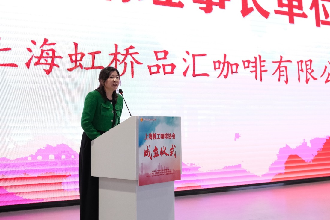 上海虹桥品汇咖啡有限公司总经理、上海市技师协会咖啡专业委员会秘书长周芳作为企业代表发言,她介绍了咖啡企业围绕产教融合,在推动企业进校园、推动校企人才培养联动等方面所开展的活动,她期待能与协会各理事单位加强合作,在咖啡文化推广、咖啡人才培养、咖啡行业发展等方面发挥各自优势,形成合力。