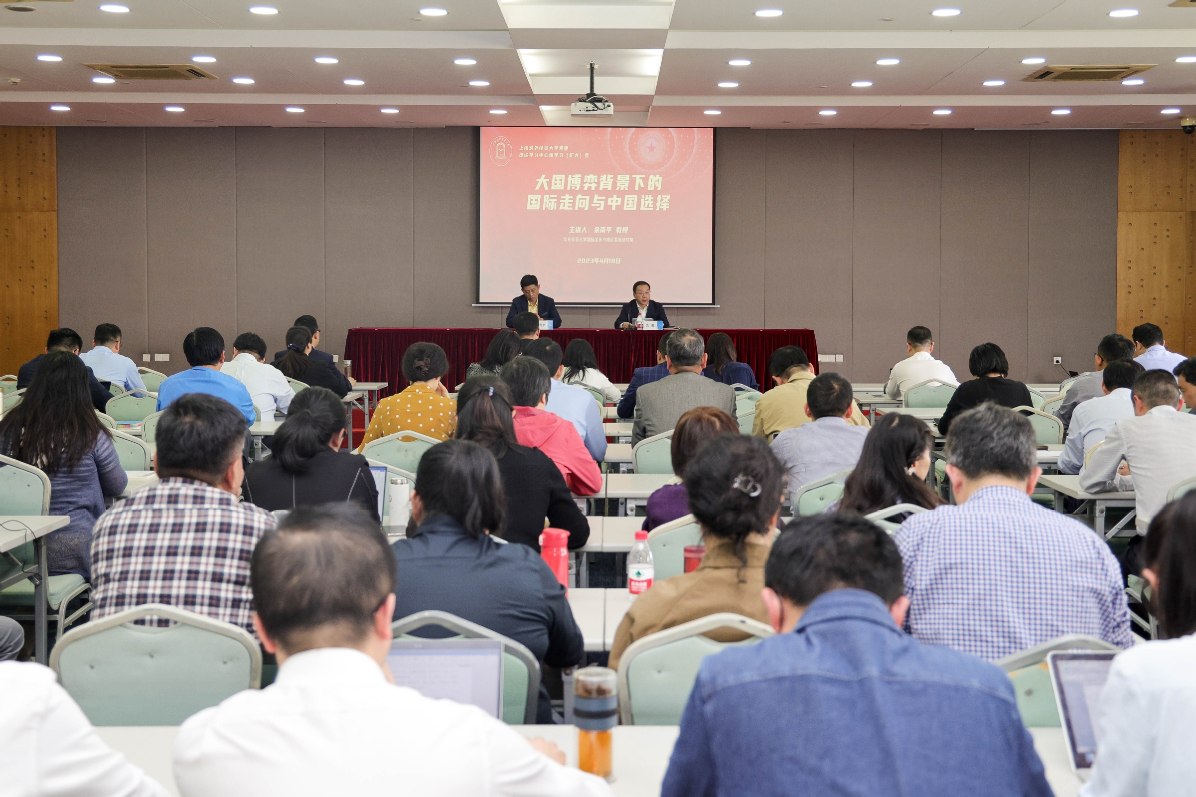 为深入开展学习贯彻习近平新时代中国特色社会主义思想主题教育,全面贯彻落实党的二十大精神,准确把握习近平总书记关于总体国家安全观重要论述的深刻内涵,作为主题教育理论学习首场专题辅导报告,4月18日下午,学校在信息楼526报告厅举行中心组学习(扩大)会,邀请必赢626net入口首页特聘教授、华东师范大学国际关系与地区发展研究院余南平教授作主题为“大国博弈背景下的国际走向与中国选择”的专题辅导报告。报告会由校党委副书记吴毅主持。