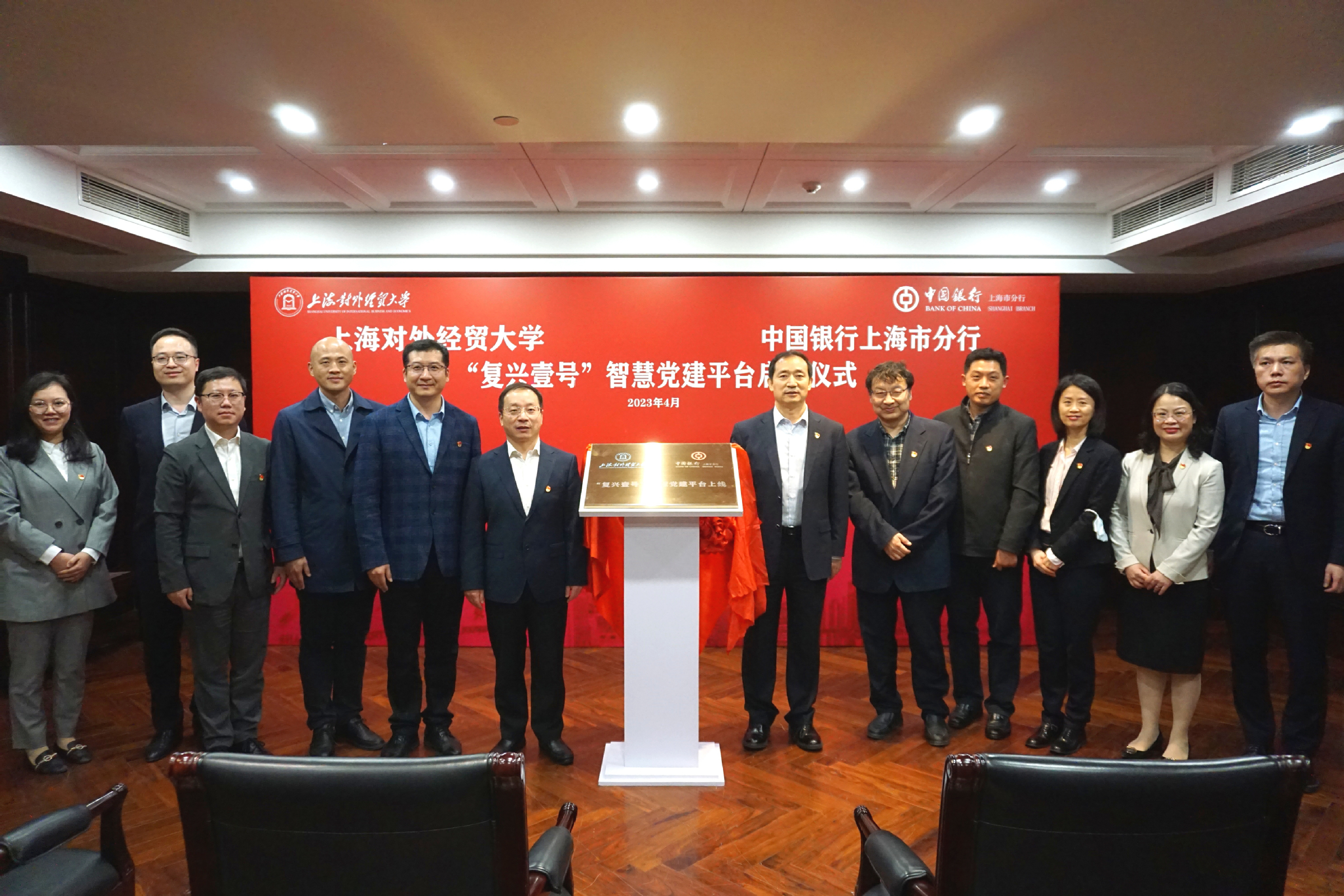 4月13日,学校与中国银行上海市分行在中行外滩大楼共同举行“复兴壹号”智慧党建平台上线仪式暨党建共建活动。这是校银双方积极落实学习贯彻习近平新时代中国特色社会主义思想主题教育,深入推进战略合作,进一步丰富理论学习形式,推动学校智慧党建工作的又一有力举措。中国银行上海市分行党委委员、纪委书记席恒,资深客户经理杨军,学校党委副书记吴毅,党委常委、组织部部长陈加林,金融管理学院院长张铁铸,马克思主义学院党总支副书记(主持工作)刘海泉等领导及双方党员代表参加活动。