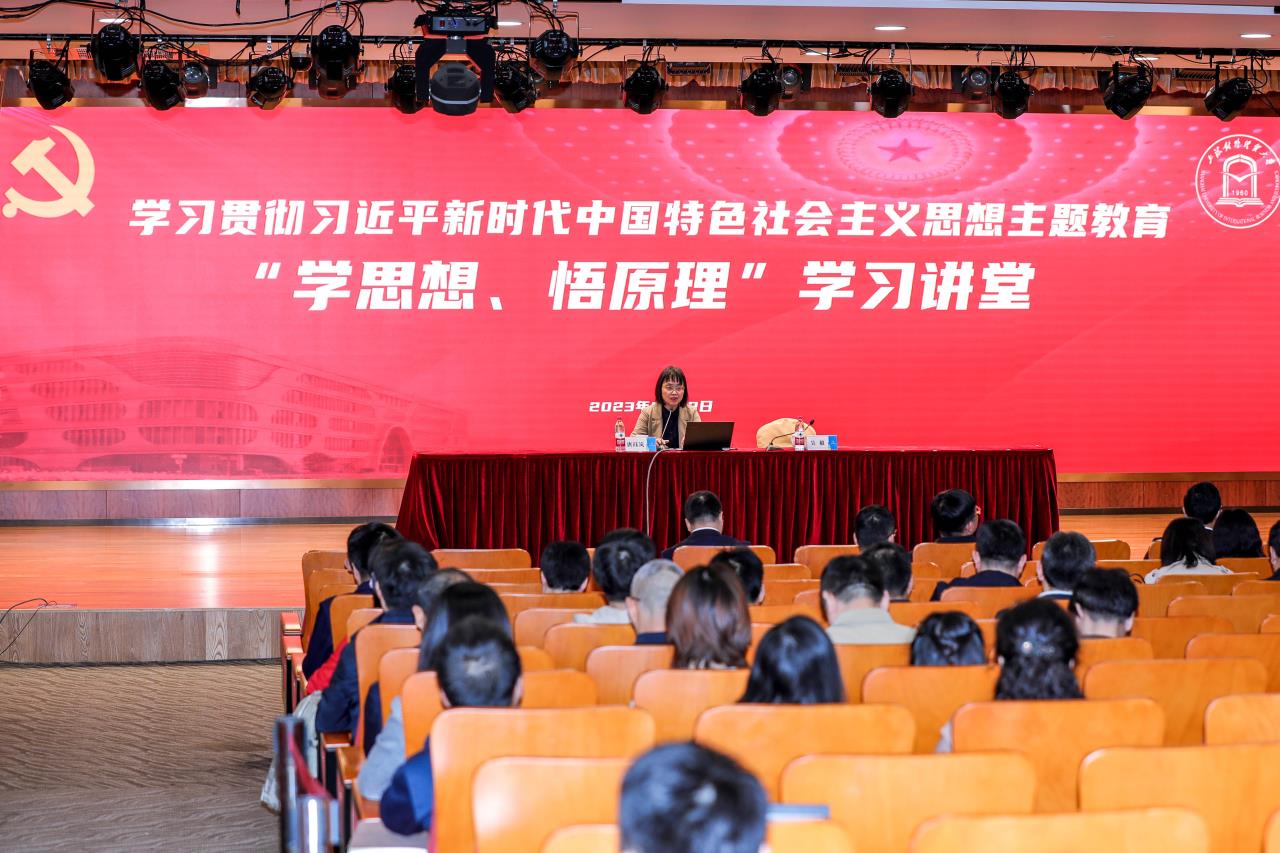 开展好主题教育,“学思想”是前提、是基础。为迅速掀起学习热潮,根据主题教育学习安排和党委理论学习中心组计划,4月22日,学校在信息楼507报告厅举办“学思想、悟原理”主题教育学习讲堂暨第2次和第3次读书班,邀请市委党校经济学教研部主任唐珏岚教授和中国浦东干部学院张素玲教授分别作主题为《加快构建新发展格局,着力推动高质量发展》和《深入学习领会习近平新时代中国特色社会主义思想的世界观和方法论》专题辅导报告。报告会由校党委副书记吴毅主持。