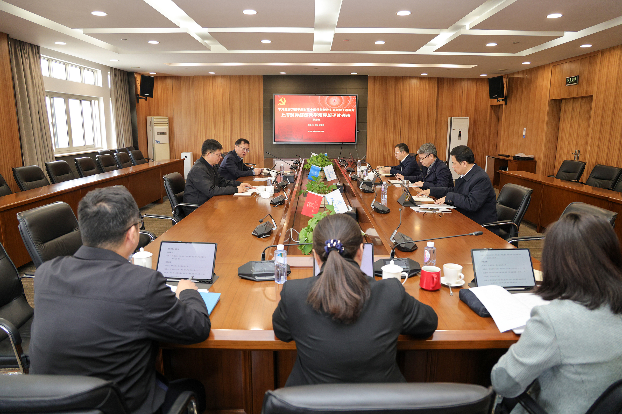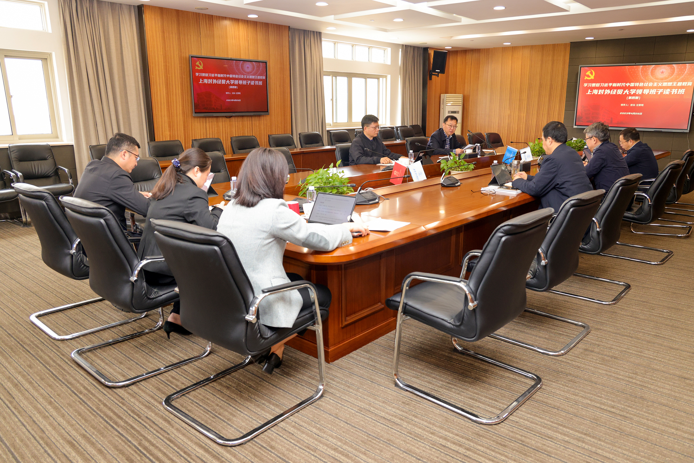 为扎实开展学习贯彻习近平新时代中国特色社会主义思想主题教育,4月26日上午,学校党委学习贯彻习近平新时代中国特色社会主义思想主题教育第4期读书班举行,党委常委聚焦“深刻把握习近平新时代中国特色社会主义思想的世界观和方法论”主题进行学习研讨。校党委书记殷耀主持本期读书班,校长汪荣明领学。