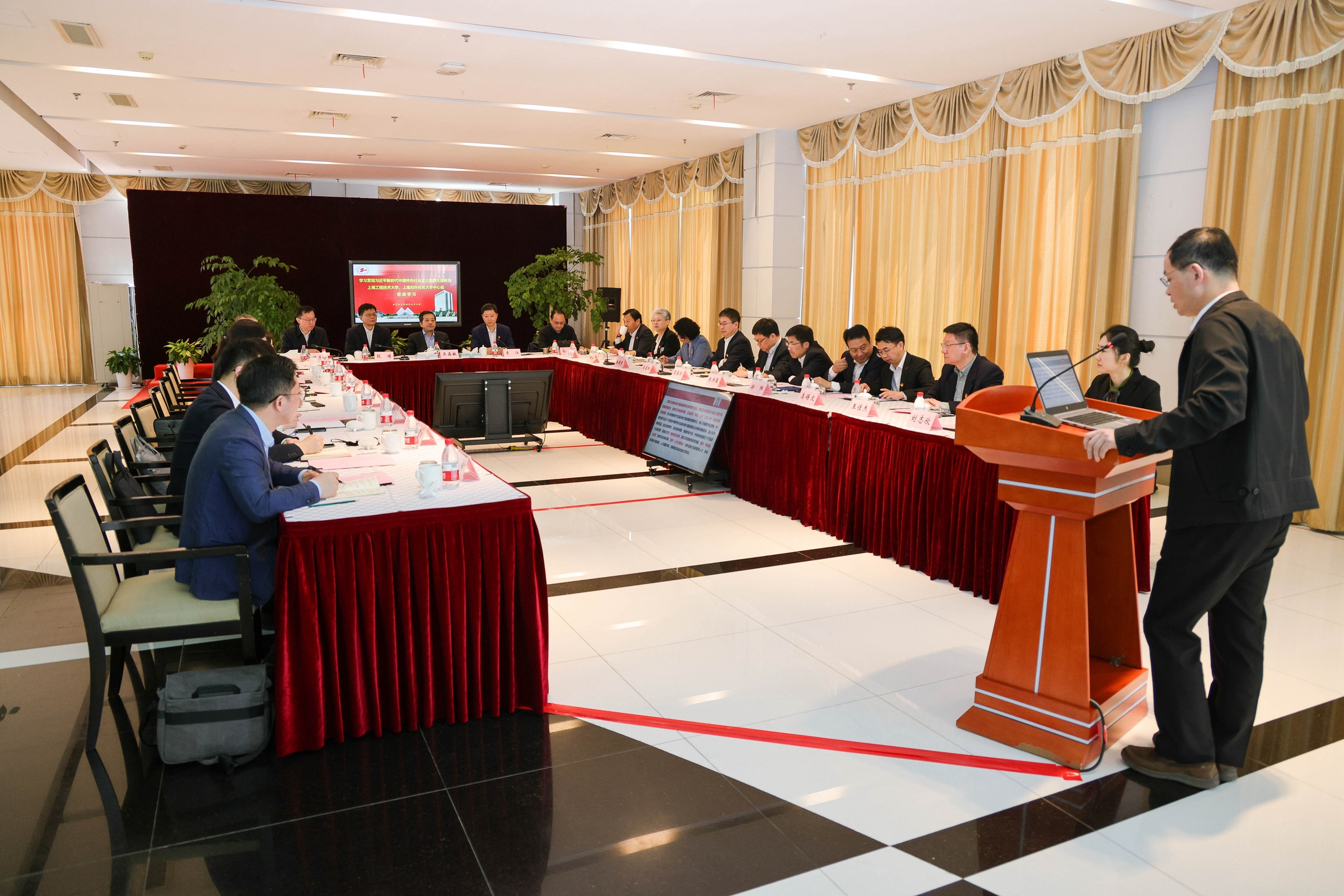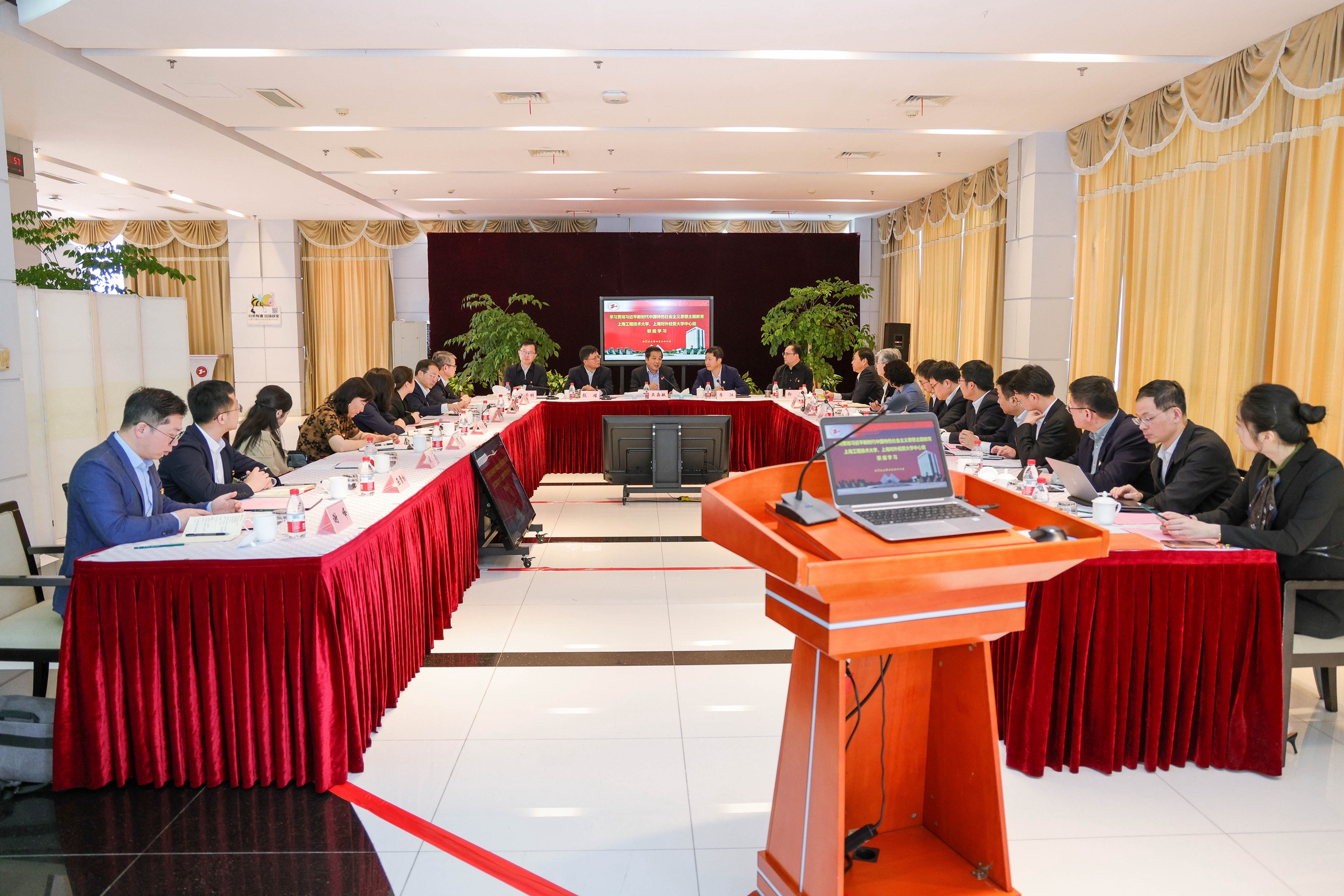 4月28日,必赢626net入口首页与上海工程技术大学学习贯彻习近平新时代中国特色社会主义思想主题教育党委理论中心组联组学习在上海工程技术大学松江校区举行,会议聚焦“全面推进教育科技人才一体化发展”的主题进行了集中学习研讨。两校党委理论中心组成员以及相关部门负责人参加了学习,市委第十八巡回指导组组长吴嘉敏莅临指导,会议由上海工程技术大学党委书记李江主持。