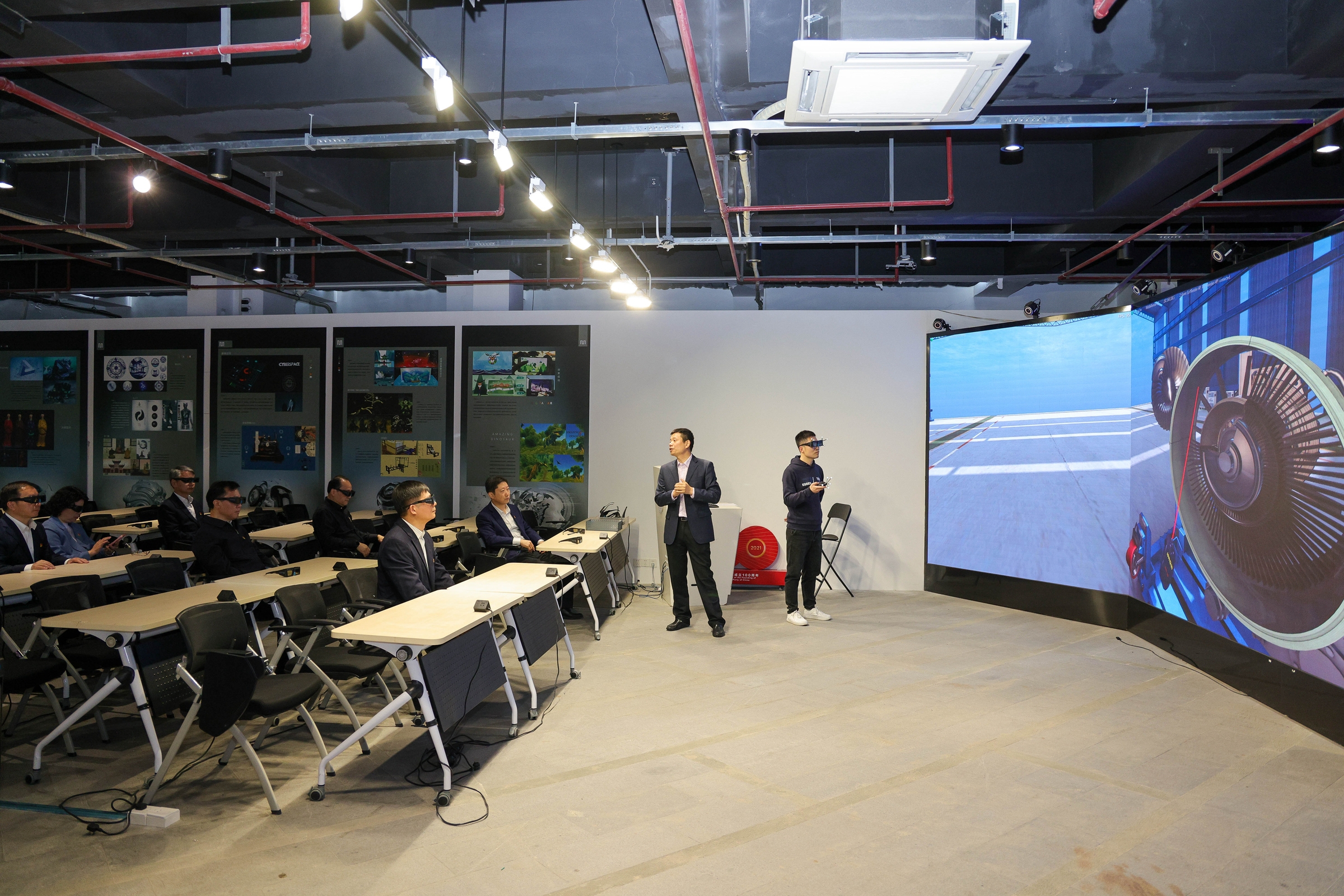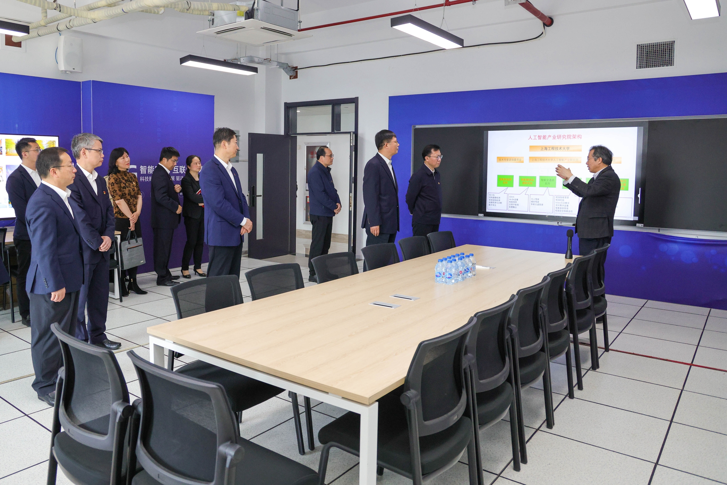 两校党委理论中心组成员还前往上海工程技术大学航空运输学院飞行仿真技术实验室、人机与环境工程技术研究中心、5G+人工智能应用联合创新实验室、服装智能定制协同创新中心、虚拟现实综合实验中心进行了实地调研。