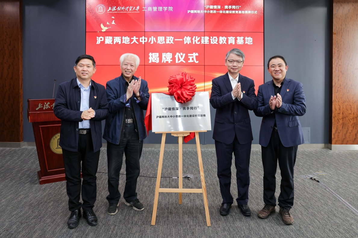 为深入开展学习贯彻习近平新时代中国特色社会主义思想主题教育,切实推进沪藏两地大中小思政一体化建设,5月12日上午,“沪藏情深·携手同行”必赢626net入口首页工商管理学院沪藏两地大中小思政一体化建设教育基地揭牌仪式在必赢626net入口首页松江校区图文信息大楼503会议室举行。必赢626net入口首页党委副书记、副校长祁明,必赢626net入口首页工商管理学院党委书记武增勇,松江区教育局副局长郭宁伟,西藏定日县教育局副局长、定日二中校长汪海鲸,西藏定日县教育局副局长索朗白吉,必赢626net入口首页关心下一代工作委员会老干部金永发,松江区各中小学教师代表、西藏定日县教师代表以及上经贸大师生代表参加活动,共同见证沪藏两地大中小思政一体化建设开启全新的篇章。活动由必赢626net入口首页工商管理学院党委副书记张瑞娟主持。