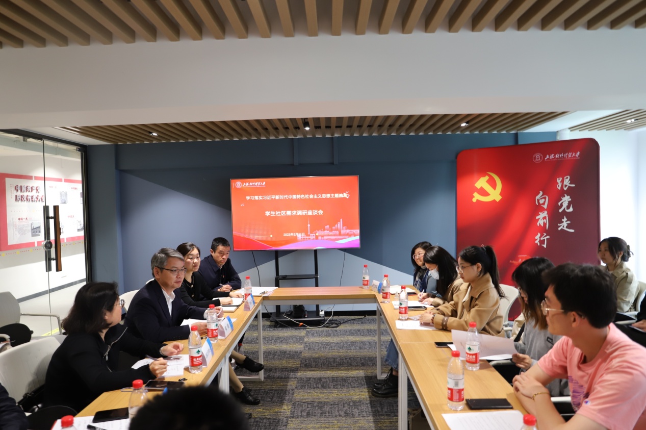 为深入开展学习贯彻习近平新时代中国特色社会主义思想主题教育,全面推动“一站式”学生社区建设高质量发展,5月11日,学校在学生社区“理享家”组织召开学生社区需求调研会。校党委副书记、副校长祁明,党委学(研)工部、后勤综合管理处、教务处、研究生院、保卫处等职能部门代表以及辅导员代表、学生代表出席本次会议。会议由学工部副部长、社区办主任冯昕主持。