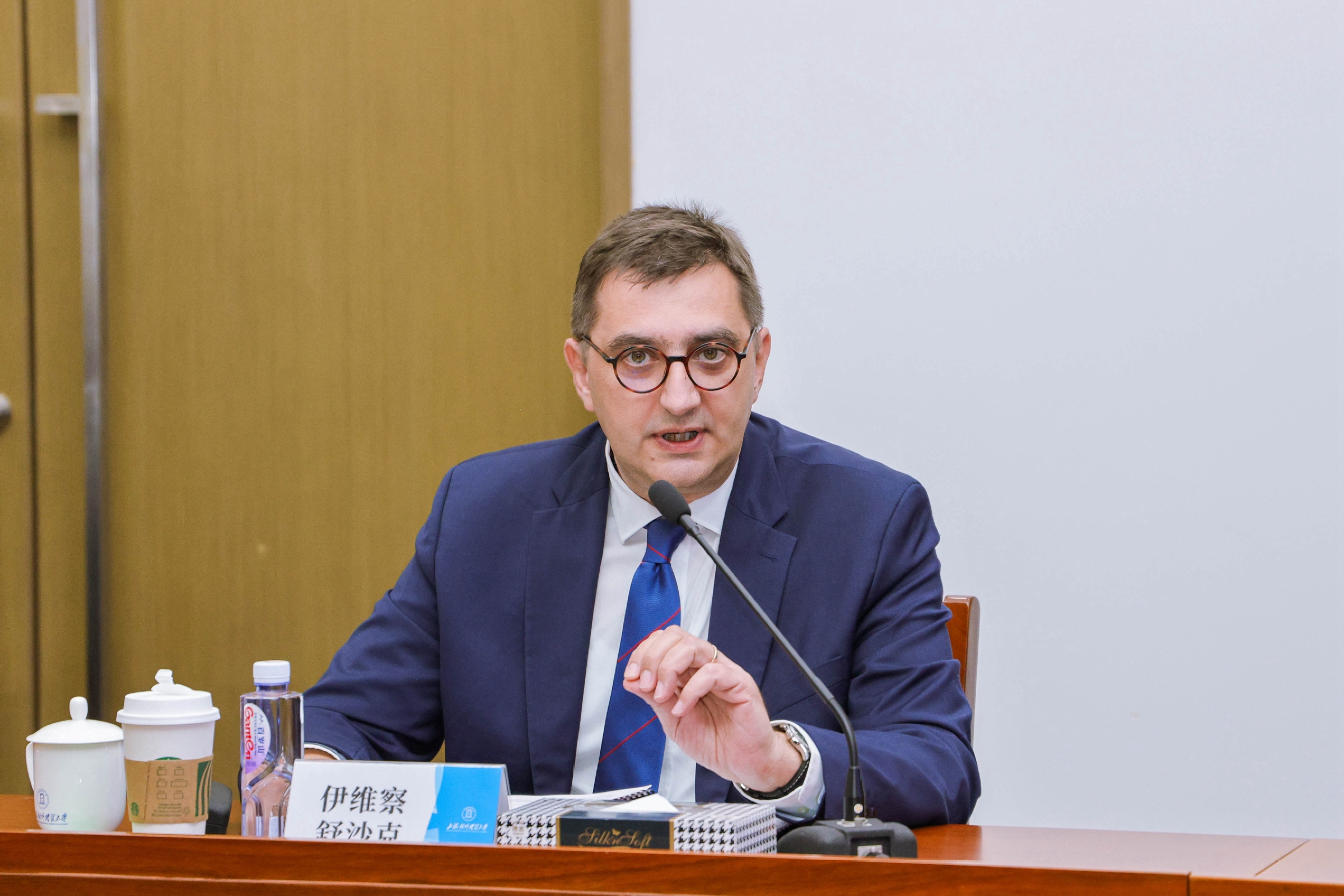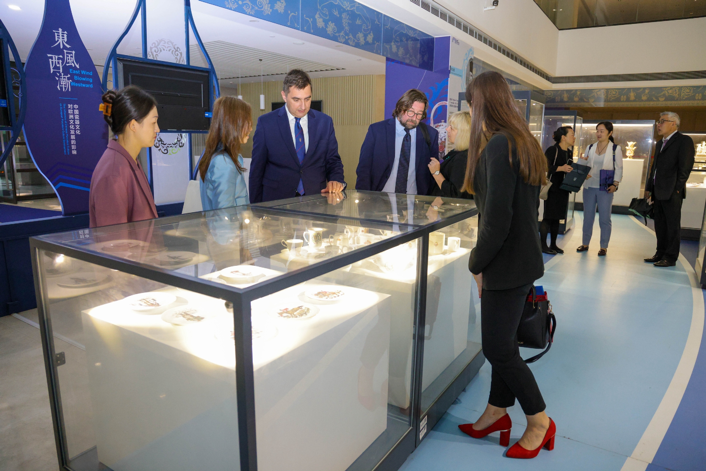 随后,在博物馆馆长丁烨的陪同下,舒沙克一行参观了学校博物馆瓷器展。