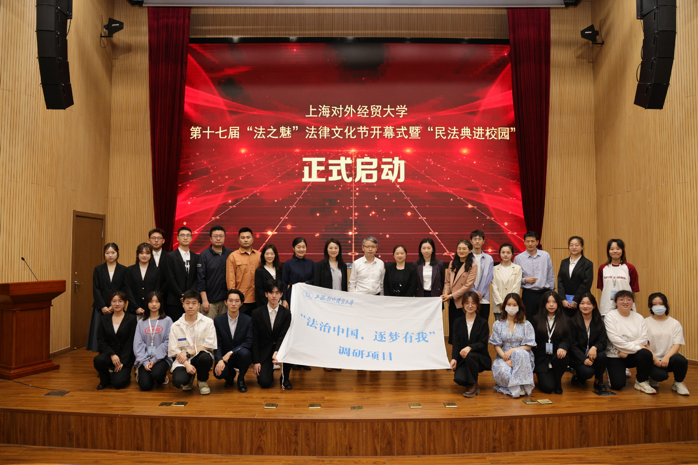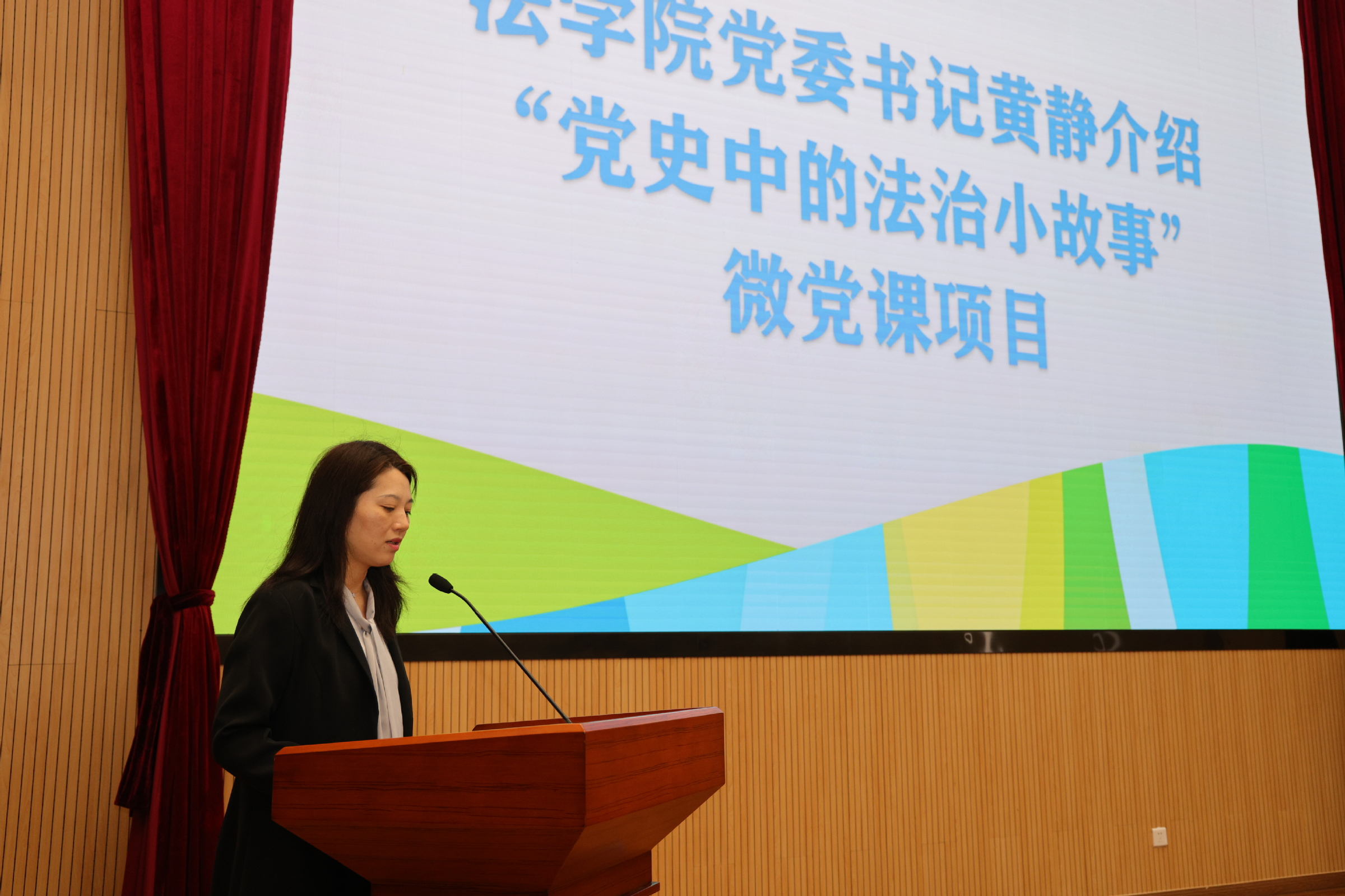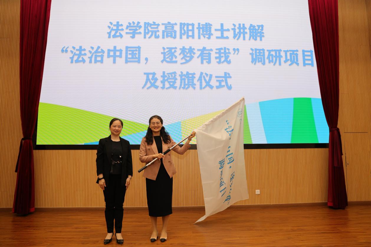 为扎实推进主题教育,深入学习习近平法治思想,引导师生深刻把握党领导法治建设的百年辉煌历程和历史经验,深入生动的法治实践一线开展调查研究,本届法律文化节还分别启动了“党史中的法治小故事”微党课项目和“法治中国,逐梦有我”调研项目。黄静、高阳依次对项目实施情况和下一步工作计划做了介绍。郭茜为调研项目授旗。