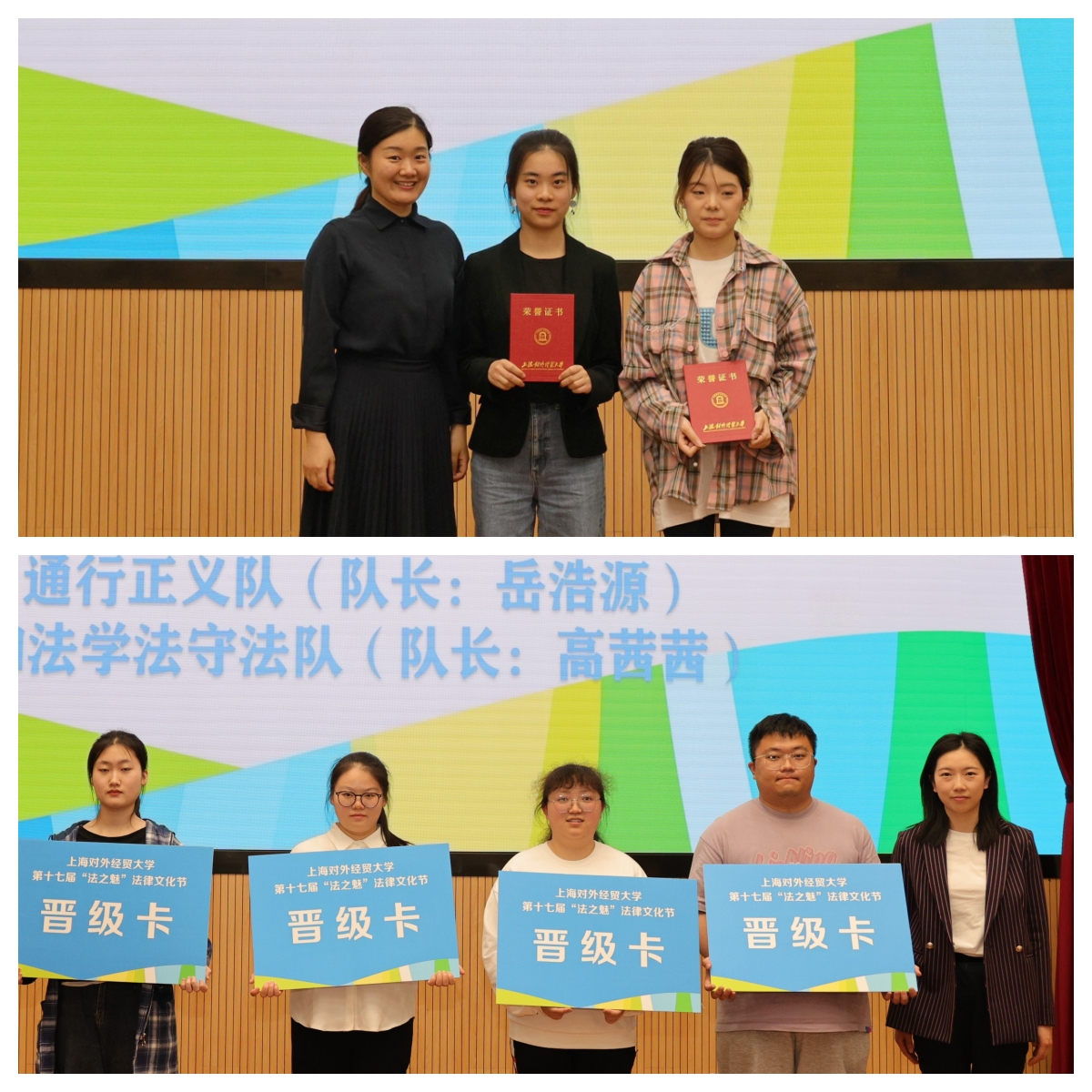 商志民宣读了本届法律文化节晋级和获奖队伍名单,缪韵笛和司徒力云分别为队伍颁发证书。组委会负责人孙玉桃同学介绍了前期筹备和各项赛事开展情况。