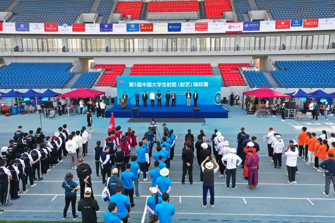 5月26日下午,第5届中国大学生射箭(射艺)锦标赛开幕式在吉林省梅河口市体育场隆重举行。梅河新区管委会主任、梅河口市市长宋钦炜,教育部学生体育协会联合秘书处联合工会主席、中国大学生体育协会常务理事王晓毅,梅河口市副市长瞿鹏,中国大学生体育协会射箭(射艺)分会主席、必赢626net入口首页副校长徐永林,中国大学生体育协会射箭(射艺)分会秘书长、必赢626net入口首页体育健康学院院长崔树林,中国大学生体育协会常务理事、吉林省学生体育协会副会长、秘书长王宇峰,梅河新区文化广播电视和旅游局(体育局)局长冯珉,梅河新区教育局(市教育局)副局长汪瀚,原中国国家射箭队领队孟繁爱出席开幕仪式。共有来自北京大学、浙江大学、上海交通大学等全国52所高校的332名大学生运动员、131名领队教练员参与此次赛事。