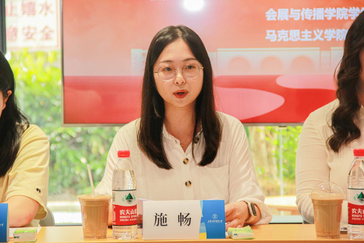 交流“研学”中,“红领驿家”教师党员、金融管理学院施畅,校教工团支部、国际商务外语学院张飞越,会展与传播学院学生王文琦和马克思主义学院学生巫嘉骏立足本职工作、所学专业,从自身经历和切身感受出发,分享了他们的研读学习体会。大家表示要把学习《当好改革开放的排头兵-习近平上海足迹》与深入学习贯彻习近平新时代中国特色社会主义思想、与全面贯彻落实习近平总书记考察上海重要讲话精神贯通起来,强化责任担当、激发奋斗热情,加快建设具有世界影响力的社会主义现代化国际大都市,为实现中华民族伟大复兴的中国梦贡献力量。