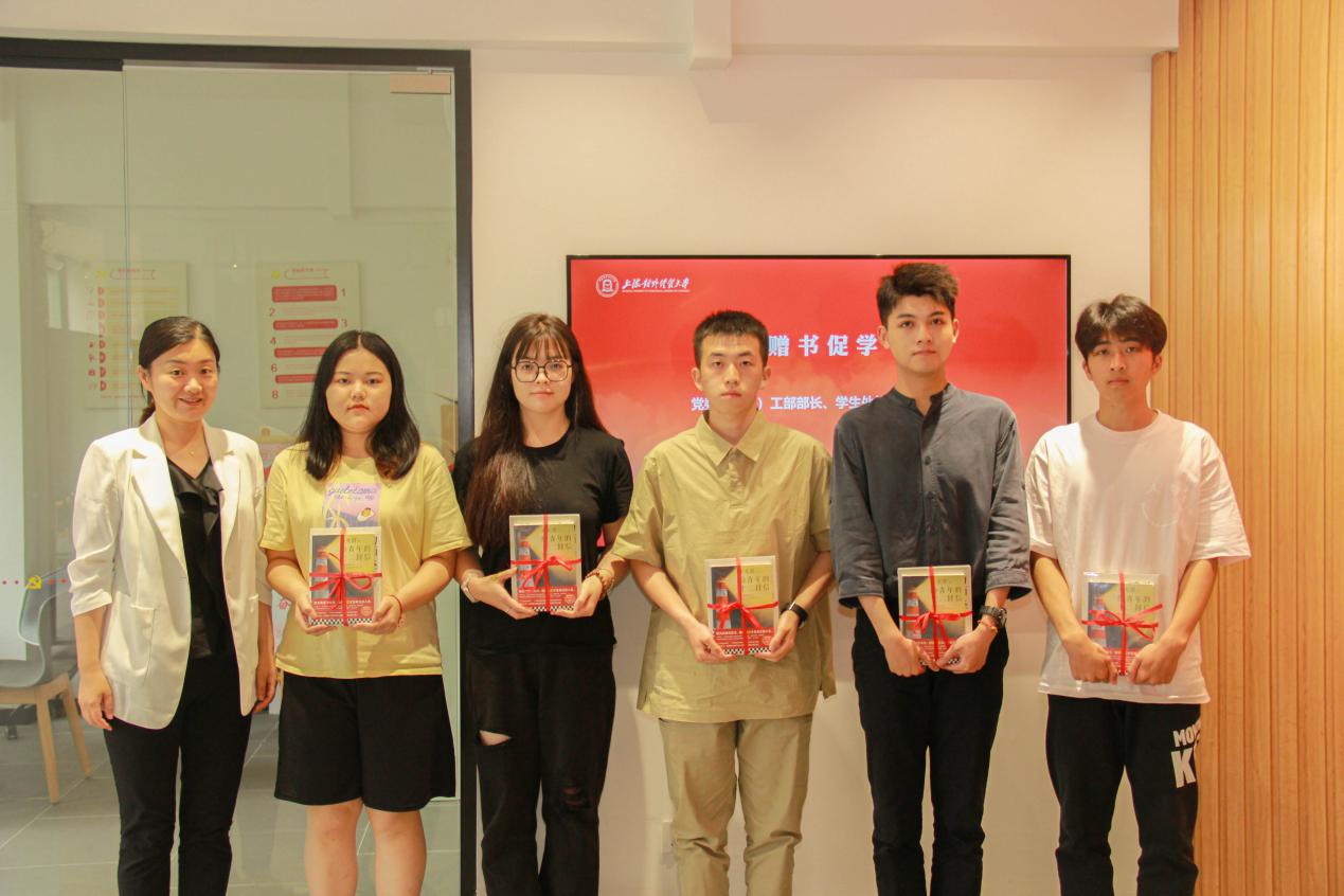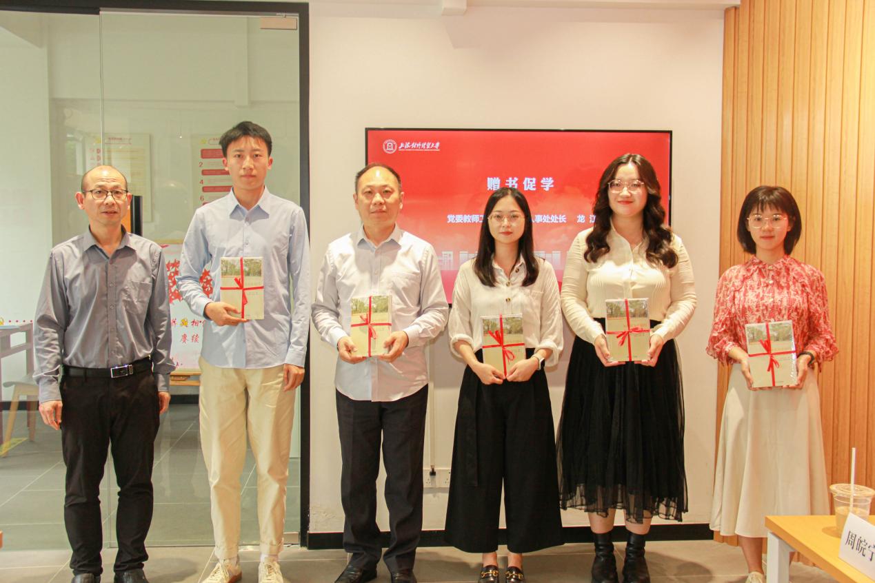 活动现场,党委教师工作部部长、人事处处长龙江和党委学(研)工部部长、学生处处长缪韵笛分别为教师代表、学生代表赠书“促学”。