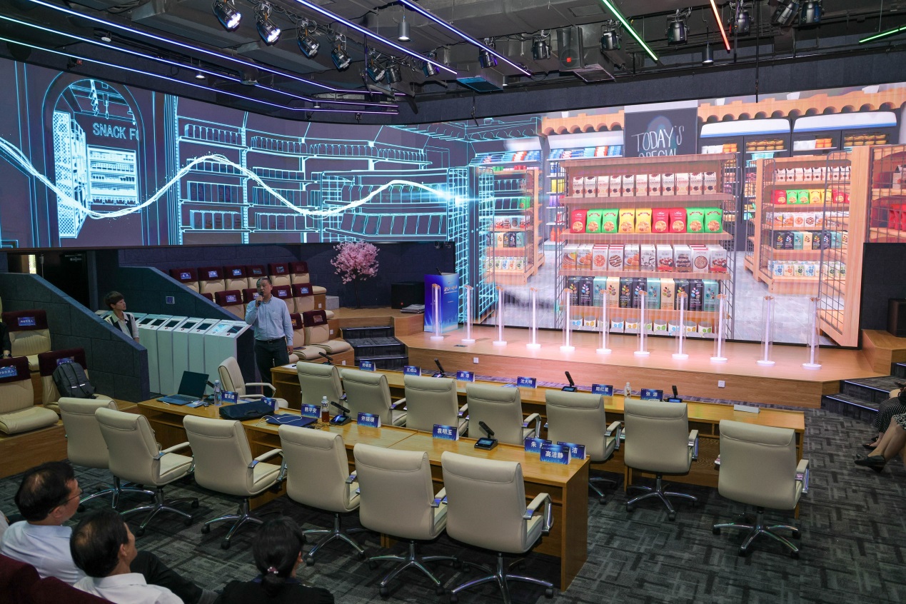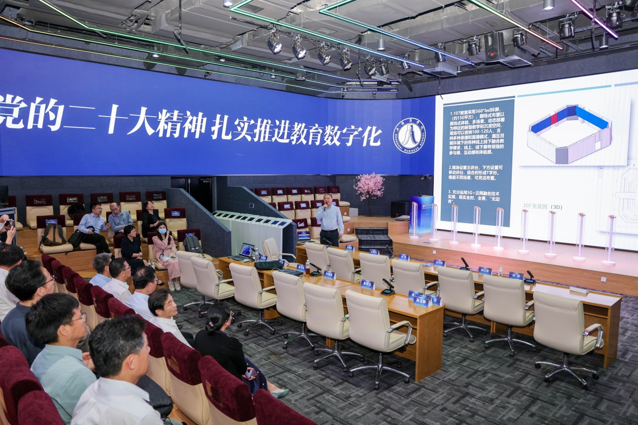 会后,汪荣明一行参观了上海商学院徐汇校区107沉浸式教室。