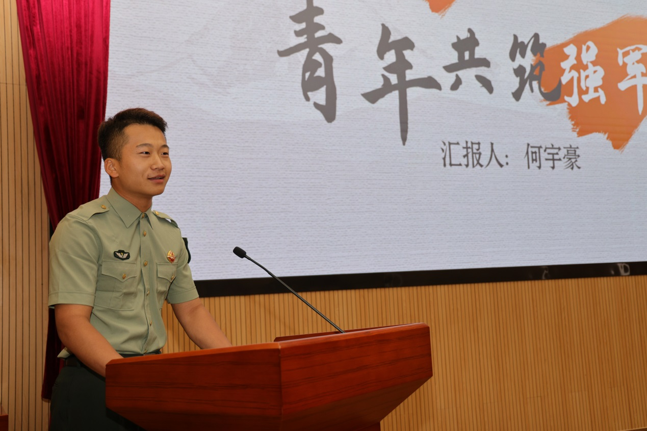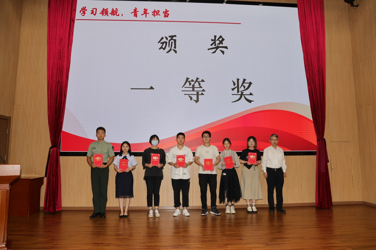 在优秀作品展示环节,“我心中的思政课”微电影一等奖获奖团队来自国际经贸学院的周晓伟团队进行《理想为引,信念化翼;青春有梦,强国有我》的微电影展示“大学生讲思政课”一等奖获奖团队代表来自马克思主义学院的袁萌雪以及来自法学院的何宇豪分别进行主题为《为实现中国梦注入青春能量》、《迈向强国新征程,青年共筑强军梦》的汇报展示