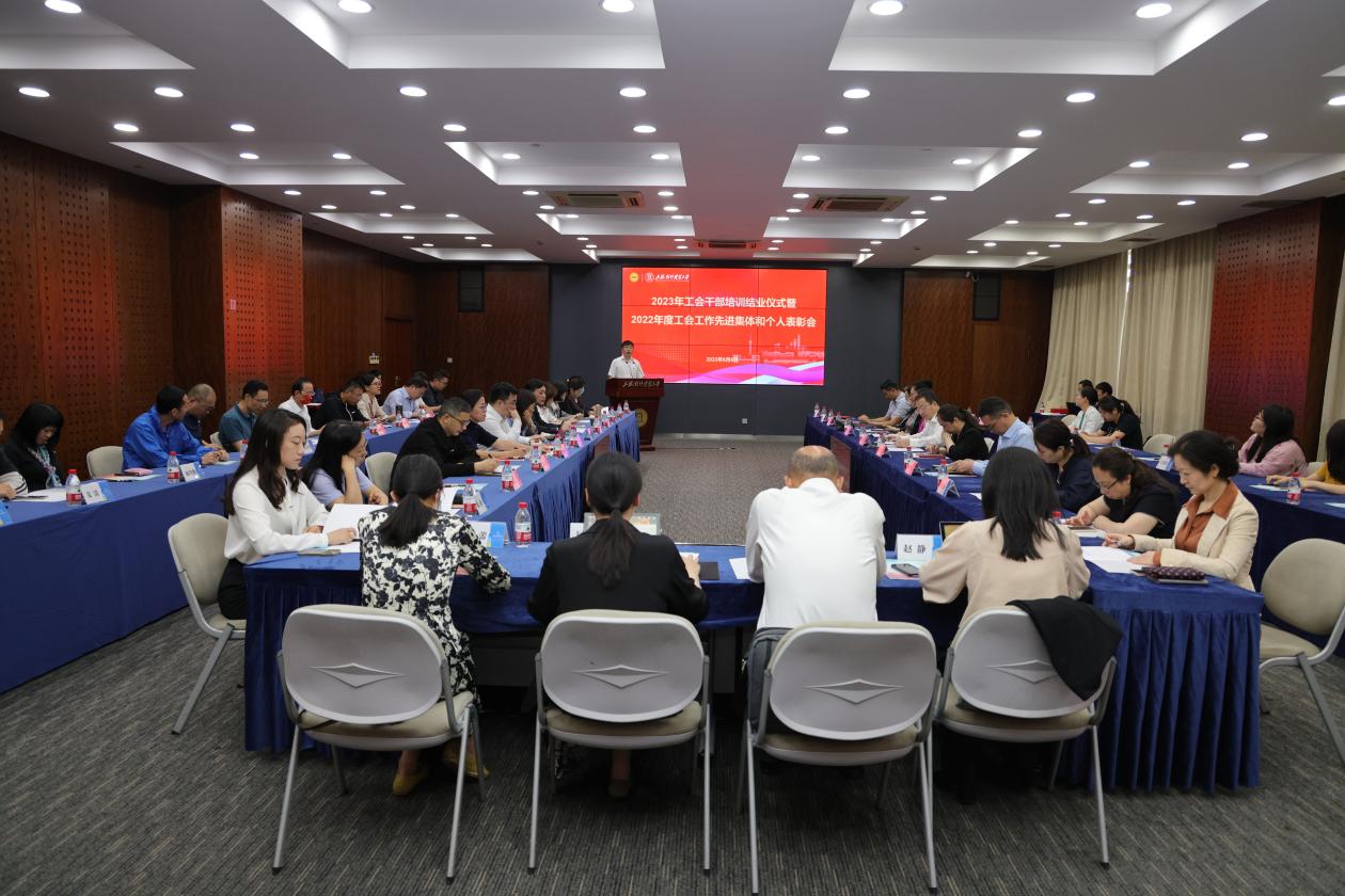 6月6日上午,必赢626net入口首页召开2023年工会干部培训结业仪式暨2022年度工会工作先进集体和个人表彰会。校党委副书记、工会主席吴毅出席会议并讲话,校工会委员会委员、经审委委员、女工委委员、二级工会主席(委员)、工会小组长及获奖代表等参加会议。会议由校工会常务副主席唐旭生主持。