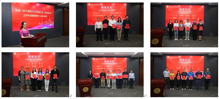 在表彰环节,校工会副主席、妇工委主任彭清清宣读了《关于表彰2022年度工会(文体协会)工作先进集体和个人的决定》。现场举行了颁奖仪式,与会领导为“工会工作先进集体”“优秀工会干部”“工会活动积极分子”“优秀教职工文体协会”“优秀协会工作者”“协会积极分子”获奖代表颁发了奖励证书。