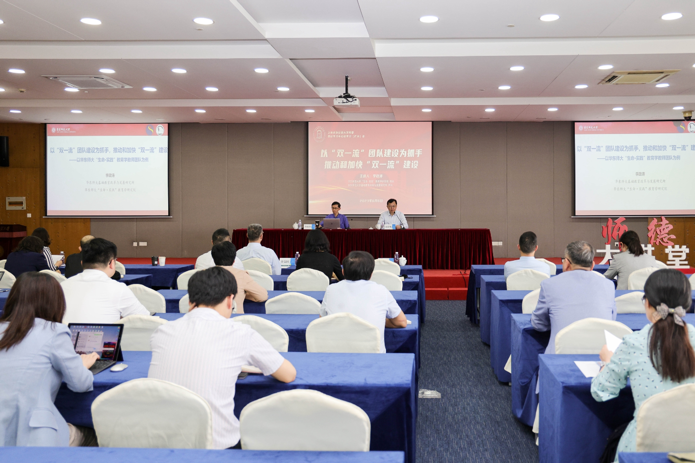 为深入学习贯彻习近平总书记在中共中央政治局第五次集体学习时的重要讲话精神,6月6日下午,学校党委理论学习中心组召开学习(扩大)会暨学校师德大讲堂,邀请华东师范大学“生命·实践”教育学研究院院长、基础教育改革与发展研究所所长、全国黄大年式教师团队负责人李政涛教授作题为“以‘双一流’团队建设为抓手,推动和加快‘双一流’建设”的辅导报告。报告会由校长汪荣明主持。