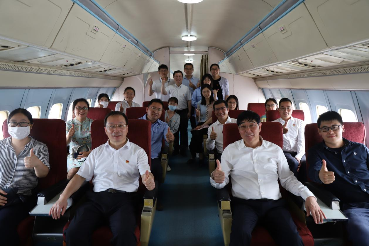 学校一行参观了新中国自行设计、制造的第一架完全拥有自主知识产权的大型喷气式客机——运十飞机,近距离感受为实现“让中国的大飞机翱翔蓝天”的中国梦的奋斗历程,及其承载的国家意志、民族梦想、人民期盼。大家实地考察了C919大型客机和ARJ21支线飞机的装配生产线,通过聆听两架飞机的研发历程、设计理念、功能用途和公司先进运营模式,深刻体会到一代代“大飞机人”薪火相传,把中国的大飞机梦一步步坚定地推向现实的坚韧品质,充分感受到新时代十年大飞机事业的蓬勃发展和取得的辉煌成就。随后,大家观看了习近平总书记亲切关怀大飞机事业纪录片,王超向大家介绍了大飞机发展历程和“航空强国、四个长期、永不放弃”的大飞机创业精神。大家深刻认识到,只有在中国共产党的领导下,才能充分发挥举国体制优势,调动一切有利资源,做强做优“中国制造”“中国智造”,突破西方技术封锁,实现科技自立自强。