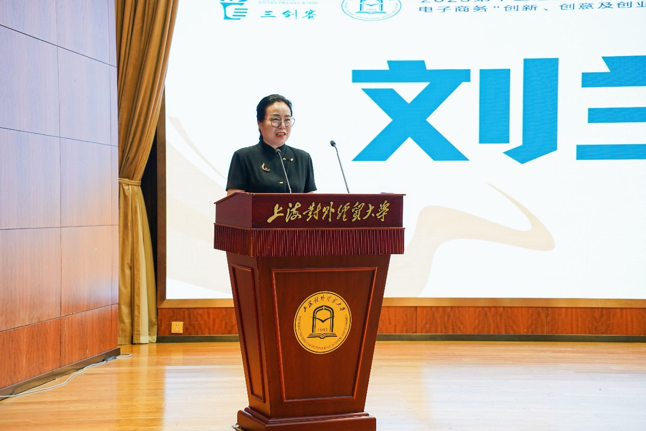 刘兰娟代表上海大学生电子商务三创赛竞组委致辞,她指出,“三创赛”作为上海市高校大学生创新创业的重要平台,在为学生们展示自我价值和才华的同时,也激发了学生们对创新创业的巨大热情。