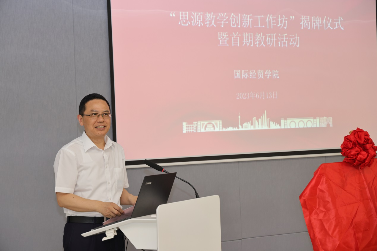 6月13日下午,国际经贸学院“思源教学创新工作坊”揭牌仪式暨首期教研活动在乐群楼302会议室举行。副校长徐永林、教务处处长朱建明、国际经贸学院党委书记郭茜等班子成员、各系负责人、中心主任、课程负责人、学科负责人、学院教师和企业导师代表出席了本次活动,活动由国际经贸学院副院长沈克华主持。