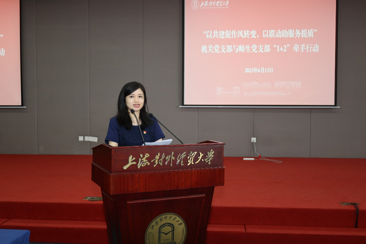 财务处党支部书记殷枫、研究生院党支部书记郝程程和法学院民商经济法系教工党支部书记王诚、统计与信息学院本科生党支部书记杨小帆等分别作了主题交流发言。