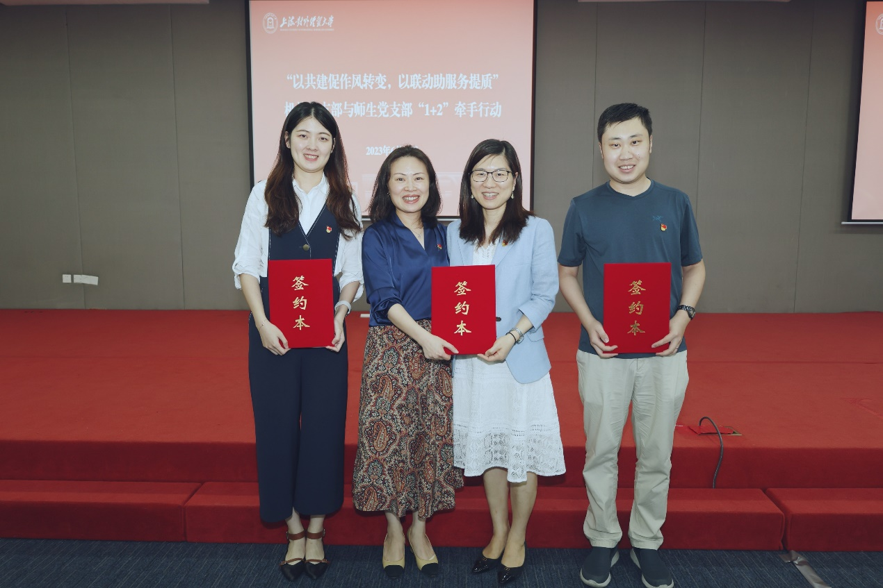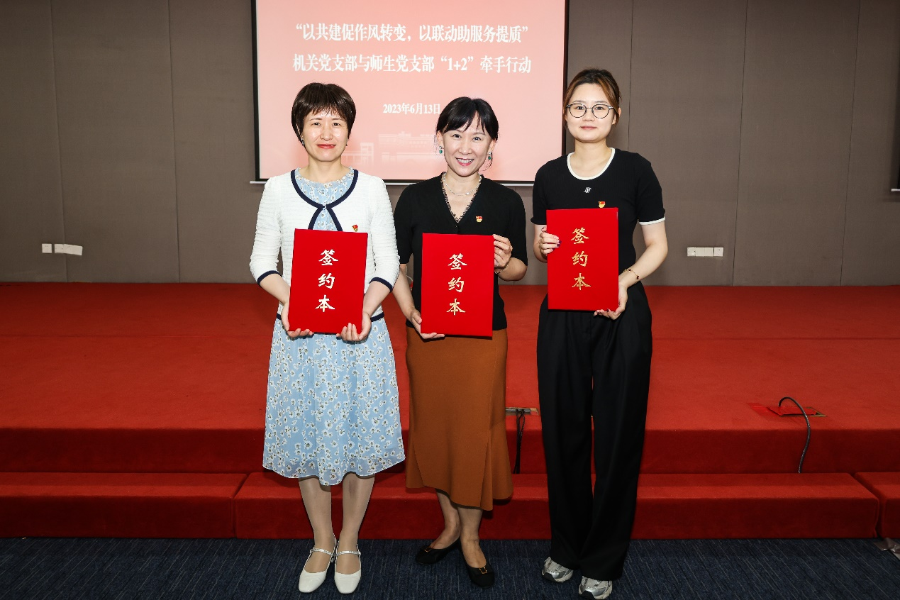 在校领导和各学院党委(党总支)书记的见证下,机关25个党支部分别与12家教学单位的25个教师党支部、25个学生党支部现场进行了共建签约。