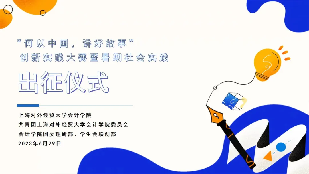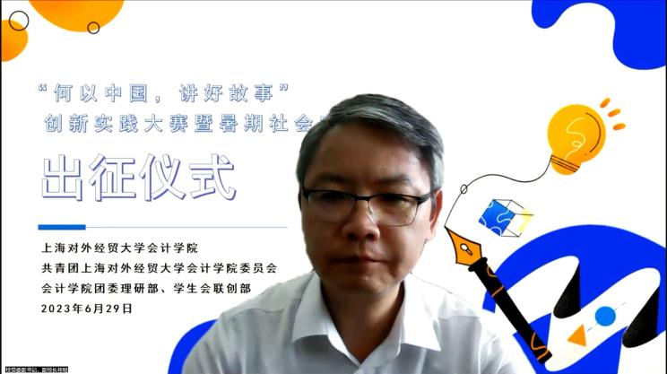 6月29日下午,会计学院“何以中国,讲好故事”创新实践大赛暨暑期社会实践出征仪式在线上举行。校党委副书记、副校长祁明,会计学院党委书记张嵘,会计学院院长裴瑱,会计学院副院长杨慧辉,校团委书记司徒力云,会计学院党委副书记施毅婷,全体指导教师以及全体参赛选手参加本次出征仪式。出征仪式由会计学院学生会联创部负责人虞天鸿主持。
