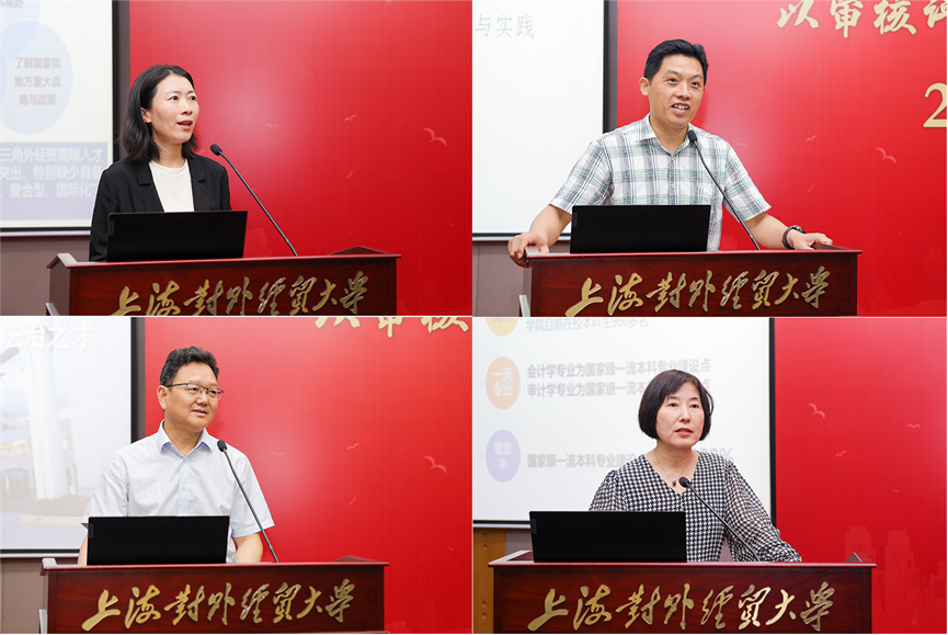 会上,国际经贸学院副院长沈克华、金融管理学院院长张铁铸、法学院院长乔宝杰、会计学院院长裴瑱分别围绕“深化人才培养模式改革,以有组织的教学提升人才培养质量”“金融学复合型人才培养模式探索与实践”“铸德法兼修之魂,育涉外法治之才 ”“面向新业态,改革人才培养模式,提升人才培养质量”作了主题交流。