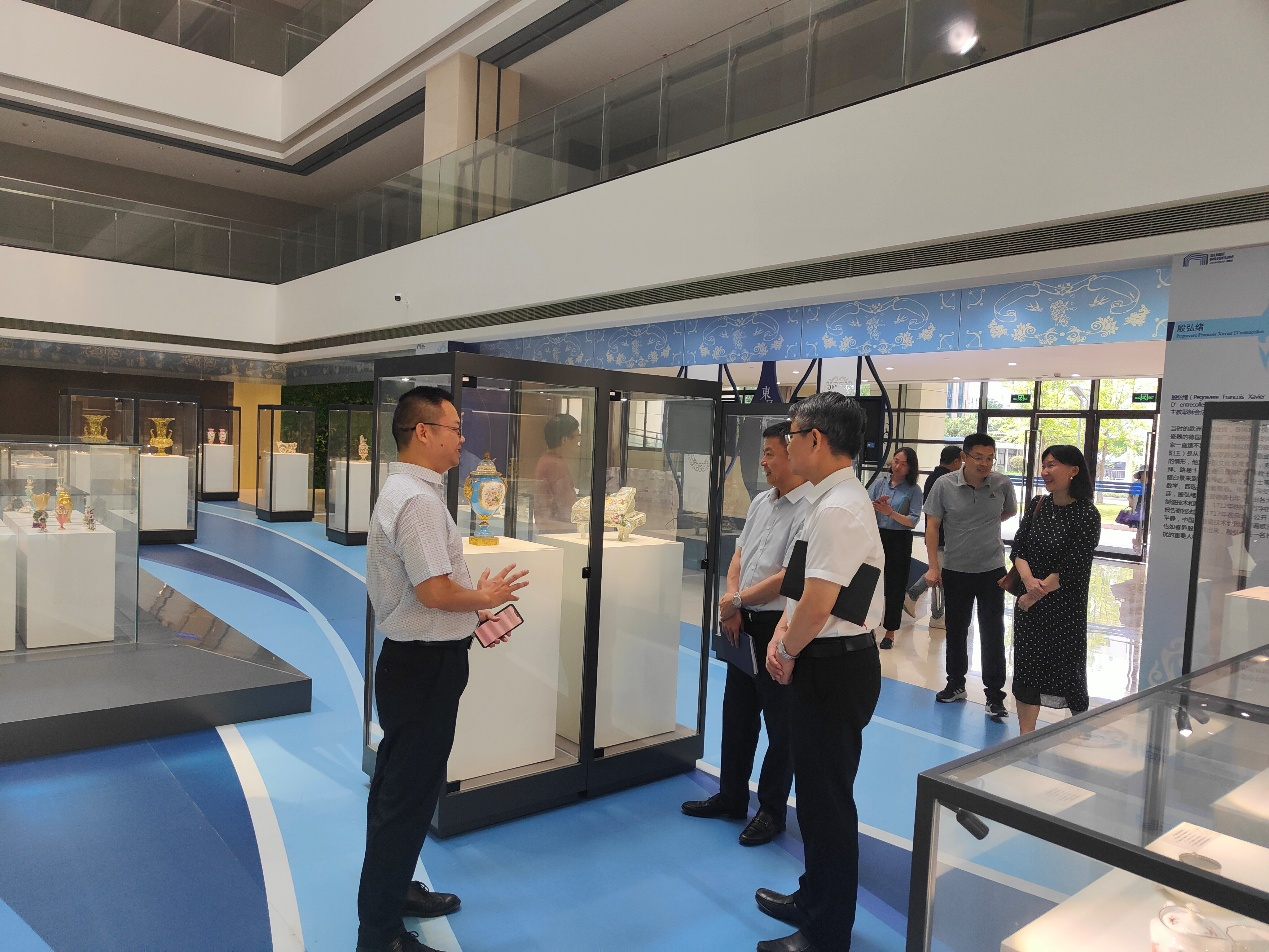 会前,仙霞新村街道办事处主任葛敏一行参观了学校博物馆展览和WTO亚太培训中心。