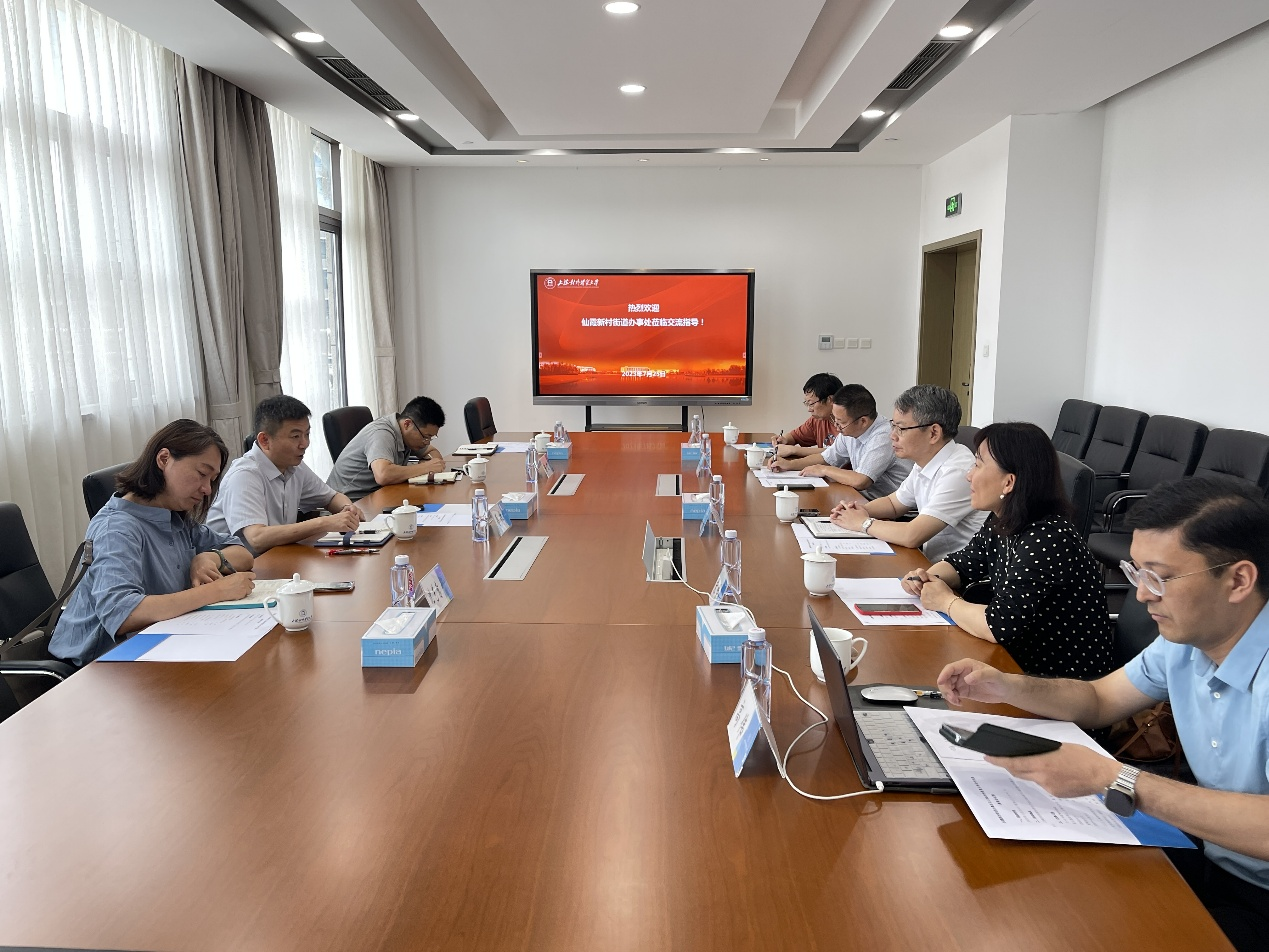 仙霞新村街道党政办主任陈波、营商办主任沈艺意、经济中心副主任曾斌陪同调研;学校办公室主任张嵘、副主任姜传松,创业学院副院长高伟和贸大企业管理公司王斌参加座谈交流。